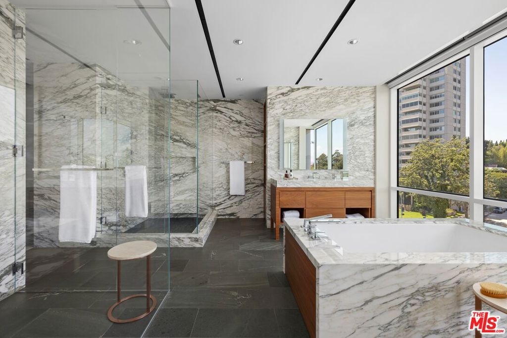 Located in one of Los Angeles's most prestigious buildings, Residence 5 North at Beverly West promises a lifestyle of sophistication overlooking the manicured fairways of the Los Angeles Country Club. This five-star, amenity-rich building offers unparalleled service, ensuring an elevated and luxurious experience for its residents and their guests. Enter via dedicated elevator access with a private vestibule into the open-concept layout bathed in natural light with expansive floor-to-ceiling windows. Spanning over 3,800 square feet, this three-bedroom, four-bathroom residence is enhanced by two outdoor terraces and premium organic finishes throughout. The beautifully appointed kitchen features chef-grade Miele appliances, natural stone slabs, and rich woods to form a culinary haven with California blue skies its backdrop, and an adjacent balcony is perfect for dining al-fresco. The primary bedroom has the home's second private balcony with impeccable views of the golf course, palms, treetops, and cityscape beyond, complete with a spa-inspired bath with dual floating vanities, oversized shower, and dressing wardrobe. Secondary bedrooms continue the residence's inherent sophistication, and Lutron lighting and shades are found throughout the home. This exclusive high rise provides numerous amenities such as direct-to-unit passenger and service elevators, pool and spa with outdoor-theatre-style projector, boardroom, large Technogym, house car, concierge, valet, and 24-hour security. Strategically sited, Beverly West is LA's best-kept secret. Experience a uniquely uber-luxe lifestyle at this rare, unmissable discovery.