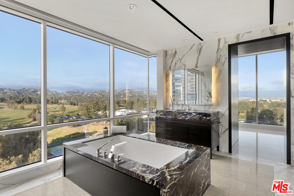Situated on the border of Beverly Hills and the Wilshire Corridor, this private residence is located in LA's most exclusive 35 unit boutique tower, The Beverly West. Built by the developers of the Burj Khalifa, The Beverly West offers world class living w/ amenities tantamount to a five-star hotel. Spanning nearly 3700ft, 11North is encased by 10FT walls of glass showcasing unobstructed views from the estates of Bel Air & BH's all the way down to the skyscrapers of downtown LA. Upon entry from your own private elevator, the great room takes advantage of the impressive yet tranquil outlook over The LA Country Club and includes a living area, dining room, and a bespoke Poggenpohl kitchen w/ exquisite St. Laurent marble & Miele appliances. The primary suite, as well as the addt'l ensuite bedrooms, feature incredible views, balconies, Lema closets and a Lutron lighting & shade system, while the baths, fitted w/ intricate Calcutta marbles & stonework, continue to boast explosive views from every corner. Additionally included is a rare & impressive 1bed/1bath secondary unit located on the 2nd floor; perfect for guests, staff, or a private office. This elite building offers 24hr security, valet, state-of-the-art fitness center with pilates studio, salt water pool, and concierge.