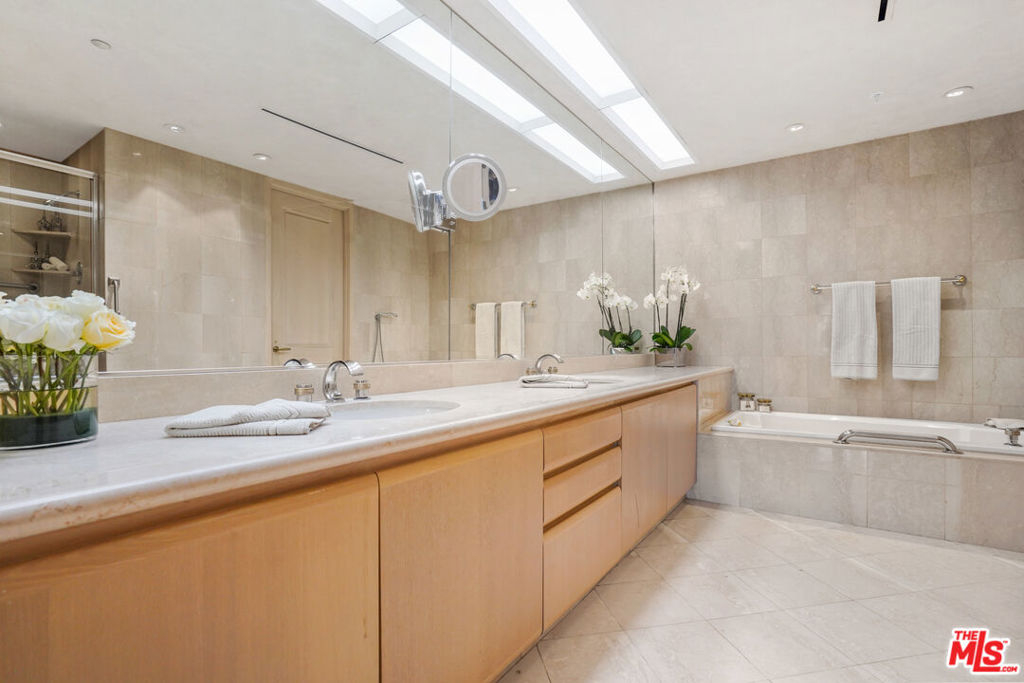 Breathtaking condo that feels like a home with SWN views, 2,776SF 2-bedroom, 2.5-bathroom at the prestigious Blair House. Formal entry welcomes you to the open concept of living room, dining, den and a bonus space next to the bar- all with spectacular views, and an oversized balcony to enjoy outdoor dining! Gourmet kitchen with a sunny eating area, built-in desk with views + plenty of storage. Retreat to the oversized primary suite - complete with its own balcony, sitting area, built-in cabinetry, walk-in closet and incredible views. Primary bathroom has dual sinks, separate soaking tub and shower. Secondary bedroom has spectacular views of its own, with an en-suite bathroom for ultimate privacy. Large laundry room with utility sink, SxS washer/dryer, and an abundance of storage. Full-service luxury amenities include lighted tennis court, brand new basketball hoop, lap pool, and spa with grounds that are hotel-chic! Prime location close to BH, Westwood and the 405. Other amenities include 24-hour valet, concierge and security, banquet room with a full kitchen and on-site manager. Discover your very own sanctuary high above the city-you will not want to miss these incredible views!