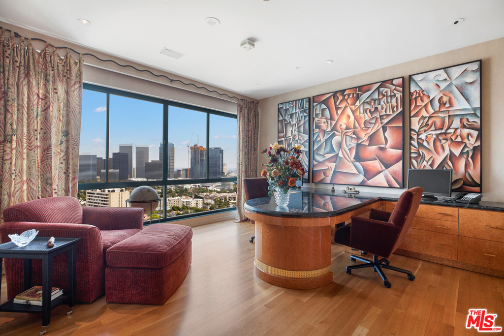 Luxury, Wilshire Corridor living, at the prestigious Blair House. This spacious 2 bed, 2.5 bath condo features 180 degree jetliner views from downtown to the ocean and fabulous natural light. The unit has an open floor plan featuring a large living room and dining area, expansive walls to display your art throughout the unit, hardwood flooring in the living area that leads to your private balcony, custom cabinetry, and top of the line appliances in the eat-in kitchen with an abundance of cabinets. The master bedroom has its own balcony, 2 spacious fitted closets and a spa-like bathroom, there is a spacious home office with custom built-ins and views. Building includes 24-hour security, valet, a door person, banquet room, gym, saline pool/spa and a tennis court.