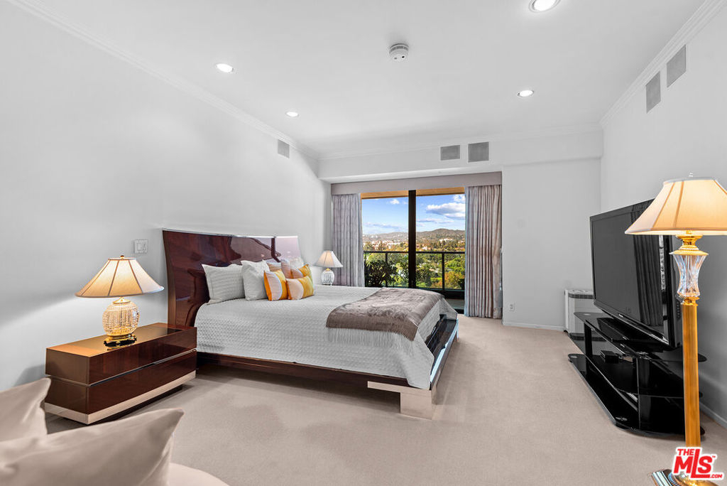 Experience luxury and comfort in this elegant 3 bedroom, 3 bath residence (currently being used as 2 + den) perched on the 12th floor of The Blair House, one of Wilshire Corridor's most desirable full-service buildings. Flooded with natural light, this spacious home showcases sweeping city and mountain views, including Century City, snow on the San Gabriel Mountains and Bel Air, through floor-to-ceiling windows, creating a serene and inspiring backdrop throughout. The formal dining area and generous living spaces are perfect for entertaining, complemented by timeless finishes and beautiful travertine marble floors. The expansive primary suite features a large bedroom, a spa-like bathroom, and a large walk-in closet. The second bedroom with ensuite bath, offers flexibility for guests, a home office, or den. Additional highlights include large laundry with lots of additional storage and 2 zones of heat and air. Unit 1206 comes with 3 deeded parking spaces. The Blair House offers an unparalleled lifestyle with 24-hour valet parking and security, Huge sparkling saline pool & spa on large pool deck featuring lots of comfortable seating and BBQs. A new huge fully equipped gym is currently under construction. Spacious rec room and north/south tennis court with lights complete the picture. This is better than living at The Four Seasons Hotel!