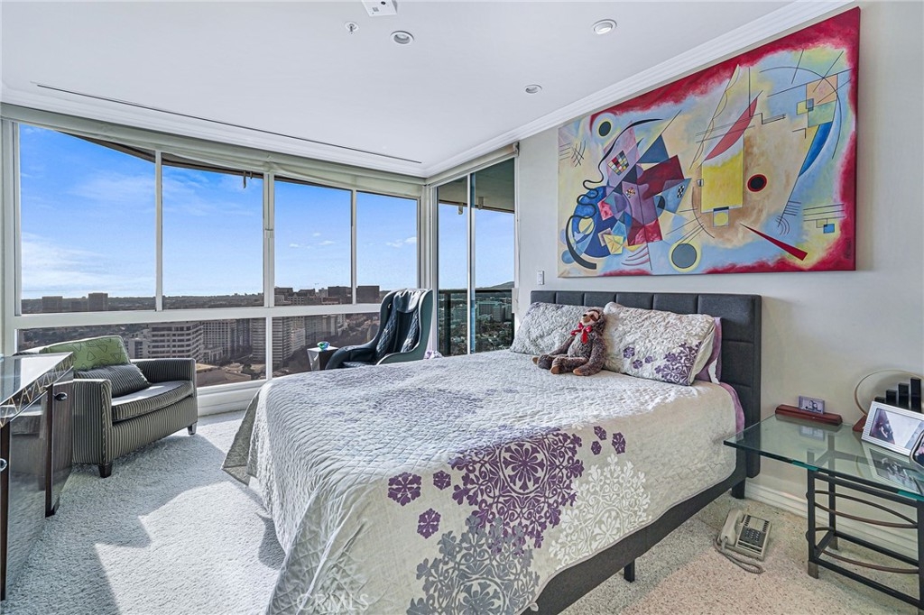 Very rare large top floor, very open unit with skyline views at the upscale Blair House Condominium. Live in west LA while feeling like you live in NYC or San Francisco. Check out this upgraded modern high rise unit in the best location of Westwood. This unit comes with stunning skyline views from one of the tallest building on the Wilshire corridor. This 27th floor beauty has a 270 degree view of the entertainment capital, Getty Center, UCLA and the Ocean.This special corner unit comes equipped with large spacious bedrooms, oversized closets, washer and dryer, contemporary new kitchen with all new stainless steel Wolf, Sub Zero appliances, new tile floors, granite countertops, open wall from kitchen to dining room allowing bright light to shine in. Upgraded bathrooms, one being a master bath with your own personal dry sauna, his and her vanity sinks, oversized shower, 2 toilets rooms, one with a bidet, new tile floor, new granite counters, and modern tub. There are 3 other bathrooms in the home, 2 are connected to the bedrooms and one is stand alone. Rooms have large balconies for breathtaking views and 2 car parking garage. Also includes additional storage downstairs and 2 car parking garage. HOA includes pool, jacuzzi, gym, tennis court, fitness center, business center, valet, cable and security. Near UCLA,Century City Mall, Getty Museum, dog parks, sunset strip, and Beverly Hills. Many restaurants, grocery stores, shops, hospitals in the area. Hurry wont last. One of the very last large top units available. Internationally friendly.