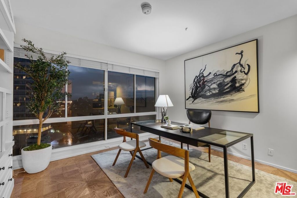 Sited in one of the most prestigious and famed buildings in the Wilshire Corridor, this jewel box unit at The Blair House boasts breathtaking views of city lights and calming Northern golf course and hillside vistas. Featuring an open and bright floorplan spanning 2,776SF, this spacious unit features 2 enormous en-suite bedrooms with walk-in closets, a light-filled den that could be used as an office or 3rd bedroom, powder bathroom, formal living room, dining room, kitchen with breakfast area, and large laundry & utility room. Perfectly designed for hosting and entertaining, the formal living spaces blend seamlessly and feature a spacious balcony for additional outdoor dining or lounging, all set against the backdrop of stunning views from the floor-to-ceiling windows. The bedroom suites are perfectly positioned within the West wing of the unit and showcase the primary suite bedroom with a walk-in closet, expansive stone-clad bathroom with vanity, and balcony - perfect for enjoying sunrise and sunset. Designer materials include beautifully inlaid wood flooring, custom crown molding, and millwork. Recognized as one of the premier "A" buildings in the Wilshire Corridor, The Blair House provides a full suite of amenities, ensuring a lifestyle of comfort and luxurious living. As one of the few buildings on Wilshire with a tennis court, it also offers a range of exclusive services, such as concierge, 24-hour doorman, gym, saltwater pool, spa, sauna, conference room with its kitchen, wine storage, and valet parking. Additional conveniences include two side-by-side garage spaces, a wine locker, and a private storage unit. Enjoy the finest in condo living, akin to living at a five-star hotel in one of the most coveted addresses in all of the Wilshire Corridor.