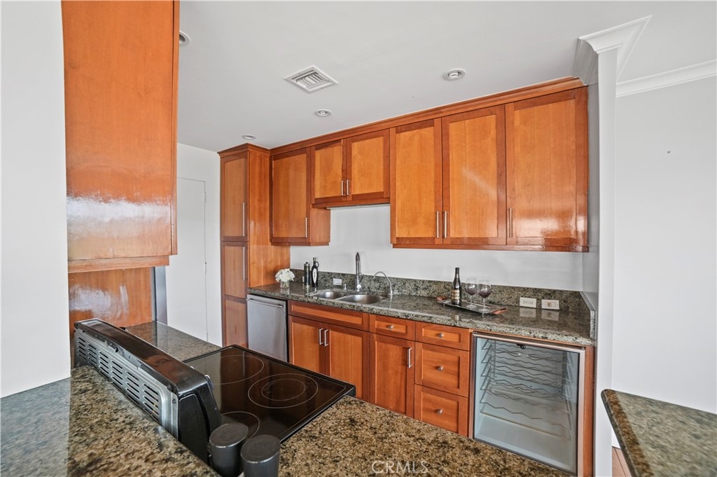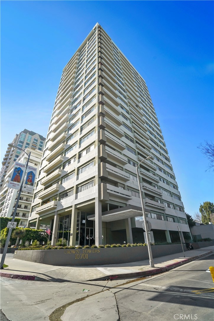 Views! Views! Views! A fantastic rare opportunity to own a beautiful condo with breathtaking views located in the prestigious Crown Towers that sits prominently on the Wilshire Corridor. Being an end unit, its location on the 14th floor is private and highly desirable. As you enter, you notice the open floor plan and the natural light in the living room and in the dining room. The beautiful kitchen has granite counter tops, stainless steel appliances, a built-in wine cooler and a service entry door. Other features in the unit, include, wood flooring, crown molding, recessed lighting and a balcony where you can enjoy the exquisite views of the surrounding cities and mountains. The master suite has two walk-in closets with custom shelves. The master bathroom has double sink and a bathtub. There is a shower and a modern sink in the hallway/guest bathroom. There are two closets with a built in dresser in the second bedroom. All of the rooms of this condo have panoramic views. Crown Towers is a full service high rise building. The amenities include fully equipped gym, swimming pool, outdoor lounge, very large sauna, meeting/recreation/banquet room with kitchen, 24/7 doormen, receptionist, concierge service and valet parking. Crown Towers is conveniently situated near UCLA, Westwood library, Westwood Village, movie theaters, multiple houses of worship and top rated schools.