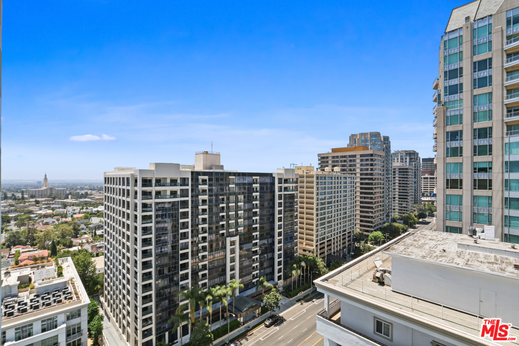 Perched high atop the city with expansive views in multiple directions, this elegant and spacious 1 bedroom/2 bath Crown Towers condominium located in the heart of the highly desirable Wilshire Corridor is sophisticated, full service living at its best!Beautiful hardwood floors lead the way to the expertly designed kitchen that includes custom cabinetry, European granite countertops, stainless appliances and ample storage space.The open plan Living and Dining area is basked in natural light thanks to the floor to ceiling glass doors which open to an oversized balcony which offers views from UCLA campus and Getty Museum to Holmby Hills and beyond. Its the perfect spot to enjoy morning coffee, afternoon tea and a spectacular sunset glass of wine!The lovely bathroom off of the Living Room features a custom modern vanity as well as additional closet space perfect for coats and overflow storage.The large Master suite features beautiful views, excellent closet space and a custom designed updated Master Bath featuring luxury vanity, bath and stone clad shower.Amenities of the building include: Valet parking, pool, sauna, fitness room, 24 hour on site staff, laundry and recreation rooms and a guarded entrance. A must see!