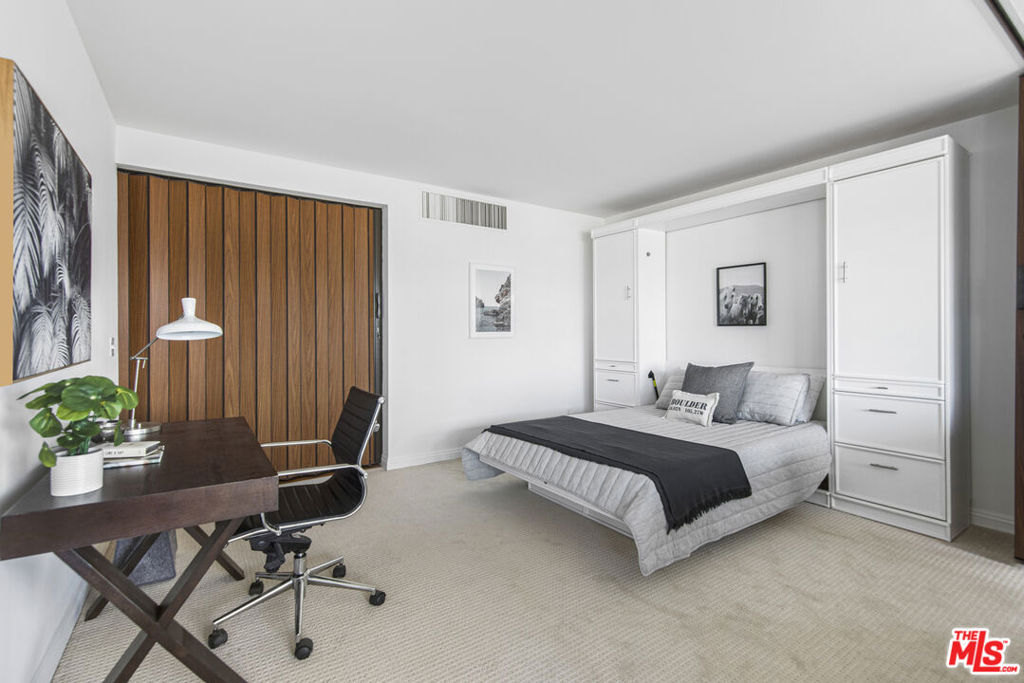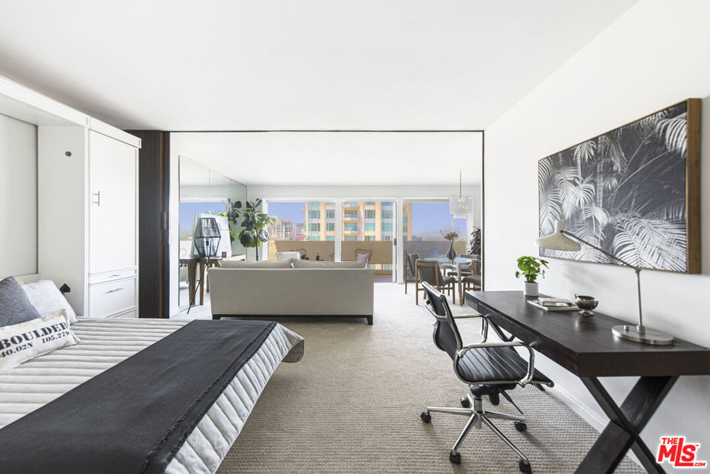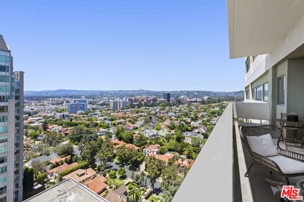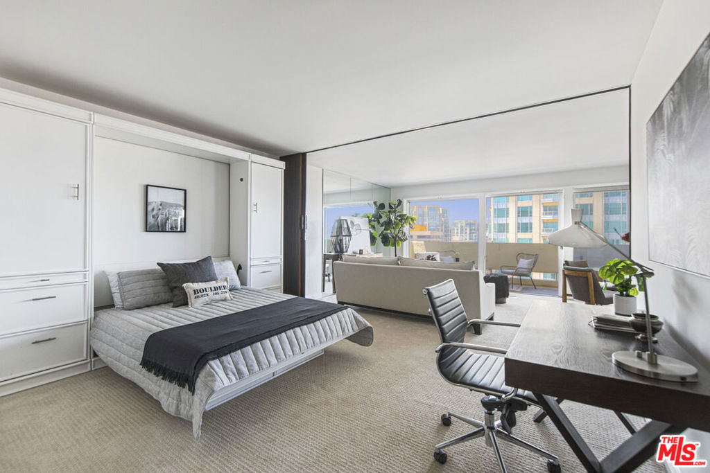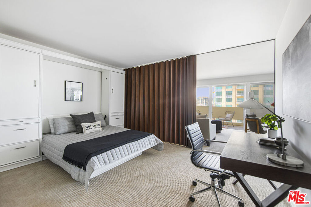 Panoramic views throughout this rare High-Floor offering in Crown Towers. From sunrise to sunset, this view will captivate you. Ocean, city and mountain views. On a clear day you can see Catalina Island. This very large one bedroom unit has been cleverly updated to include a convertible second bedroom with cascading floor to ceiling partitions and a custom pull down Murphy Bed. Excellent for sleepover guests or roommates. Walking distance to UCLA and trendy Westwood Village. Thoughtfully updated unit that has had the ceilings smoothed, updated storage with extra closets, freshly painted, new carpet and gorgeous hardwood flooring. Large balcony to enjoy the views and city below. This unit has a rare deeded parking space with an EV charger. 2 spaces total. Valet parking, concierge, the pool is heated all year round at a comfy 84 degrees, gym with sauna, meeting room and extra storage locker. No pending assessments and a friendly staff at your disposal. Excellent opportunity!