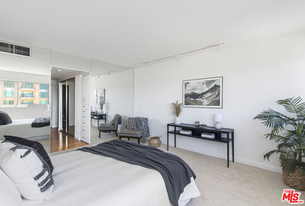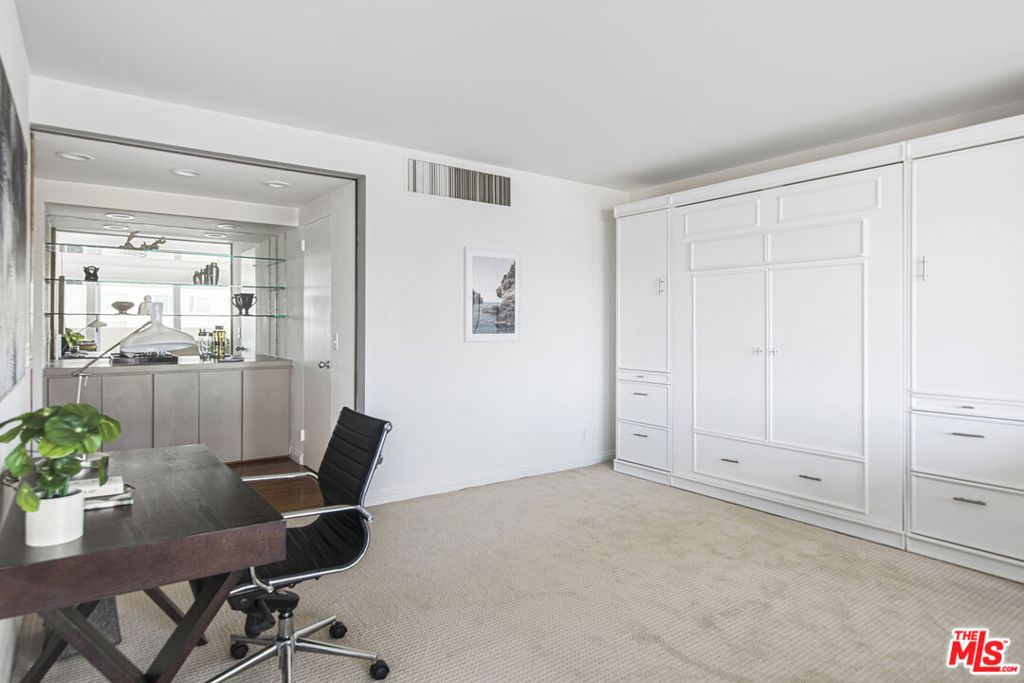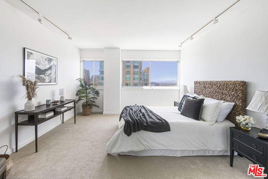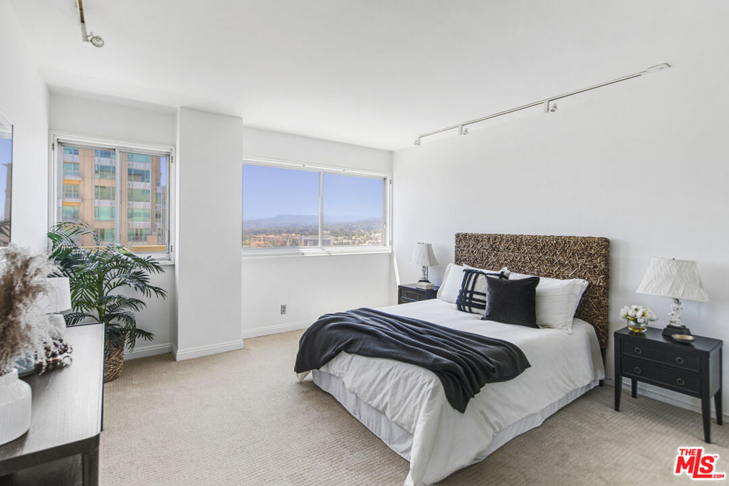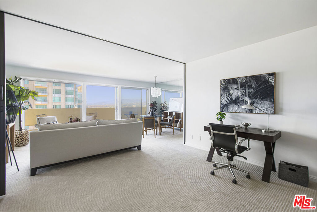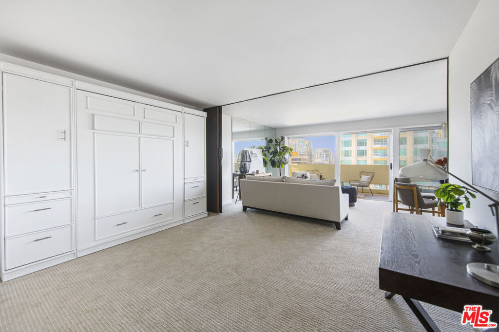 Panoramic views throughout this rare High-Floor offering in Crown Towers. From sunrise to sunset, this view will captivate you. Ocean, city and mountain views. On a clear day you can see Catalina Island. This very large one bedroom unit has been cleverly updated to include a convertible second bedroom with cascading floor to ceiling partitions and a custom pull down Murphy Bed. Excellent for sleepover guests or roommates. Walking distance to UCLA and trendy Westwood Village. Thoughtfully updated unit that has had the ceilings smoothed, updated storage with extra closets, freshly painted, new carpet and gorgeous hardwood flooring. Large balcony to enjoy the views and city below. This unit has a rare deeded parking space with an EV charger. 2 spaces total. Valet parking, concierge, the pool is heated all year round at a comfy 84 degrees, gym with sauna, meeting room and extra storage locker. No pending assessments and a friendly staff at your disposal. Excellent opportunity!