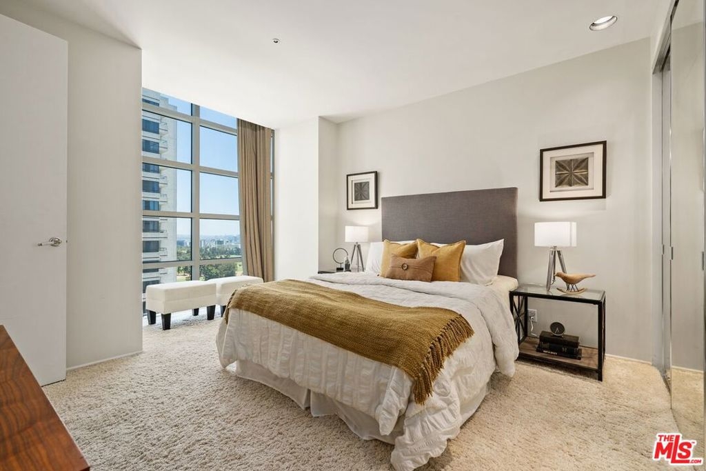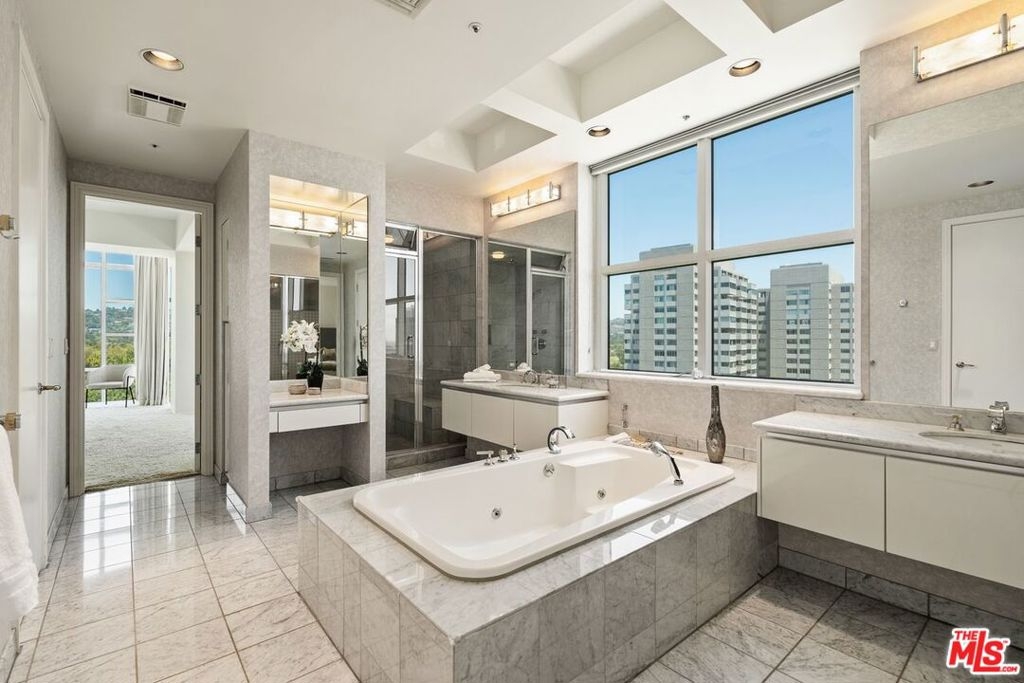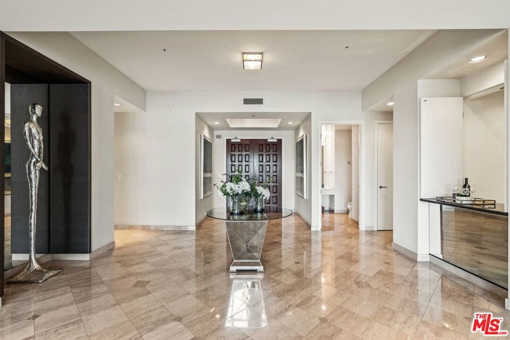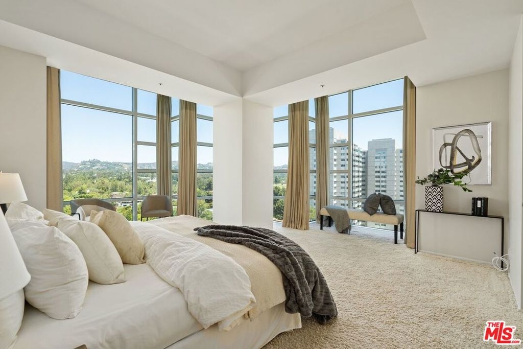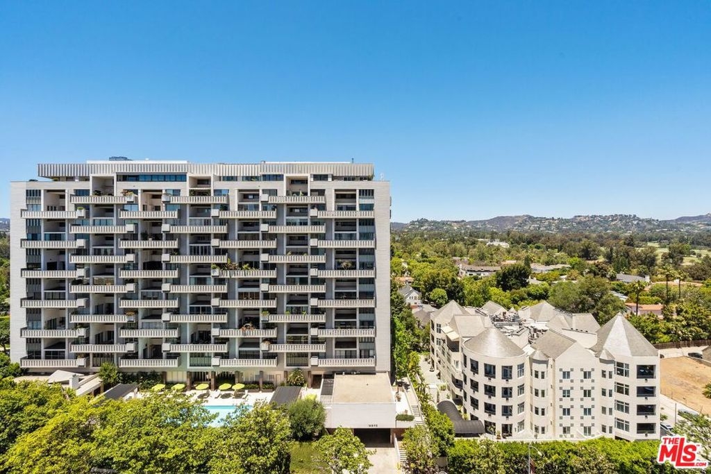 This light and luxurious corner unit with large open spaces is in the prestigious, full-service building on the Wilshire Corridor, La Tour. Located on the 10th floor, you will fall in love with the North-facing city and mountain views. The fabulous open floor plan showcases high ceilings and expansive windows throughout that welcome natural light and overlook the luxuriant vistas. Enter into the private formal foyer leading to the great room combining the living, family, dining and spacious multiple covered terraces. The top-quality chef's kitchen features professional appliances, a cooking island, granite countertops for formal or informal dining. Large laundry room w/sink, storage, with a third direct access, opening to a separate storage room. The incredible master suite includes a spacious and opulent master bath. The La Tour building amenities include 24-hour concierge, valet parking, gym, pool/spa/sauna & meeting/banquet with a kitchen for entertaining . On-site management, a secured elevator on the Wilshire Corridor and is adjacent to Beverly Hills, Westwood and Century City.