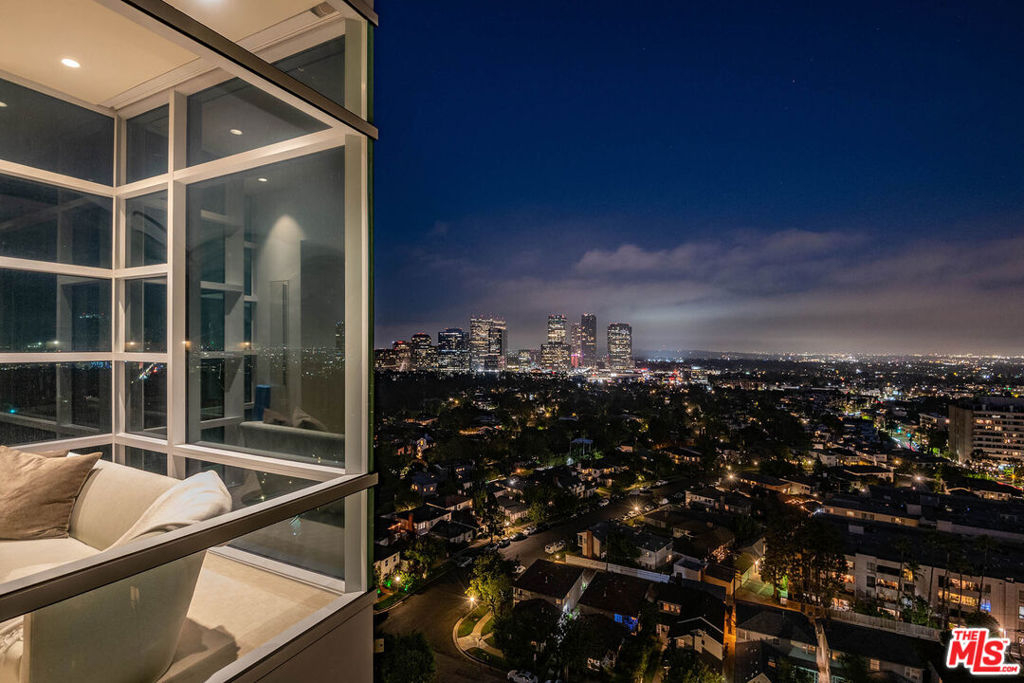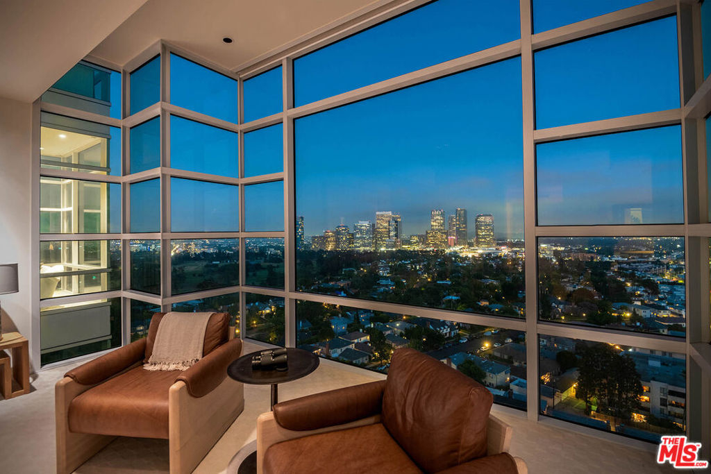 Coveted South East facing 3 bedroom and 3.5 bath condominium in one of the most prestigious full-service buildings on the Corridor, La Tour. This unit sits high above the city on the 14th floor with walls of glass throughout allowing for panoramic unobstructed views of the Pacific Ocean, Century City, Los Angeles Country Club, Downtown Skyline and beyond. This elegant and sophisticated unit has a custom interior design by famed architect Hal Levitt, AIA. Fabulous open concept floor plan with both interior and exterior entertaining spaces including two balconies. Enter into the formal foyer leading to a spacious great room consisting of the living room, dining room, and family room. Custom to this unit are the extended ceiling heights allowing for abundant space to showcase a museum-worthy art collection. The large gourmet kitchen features professional appliances, granite countertops, island/breakfast bar, and eat-in breakfast area. The luxurious primary suite offers a sitting area, walls of glass with electric shades, an oversized walk-in closet, and gorgeous marble bathroom with spa tub and separate shower. 2 additional en-suite bedrooms make up the East corner of the residence. Laundry room and powder room complete the interior of the unit as well as having all the desired amenities in this full-service building including 24 hour concierge, valet parking, a recently remodeled fitness center, pool/spa/sauna, and banquet/meeting rooms.