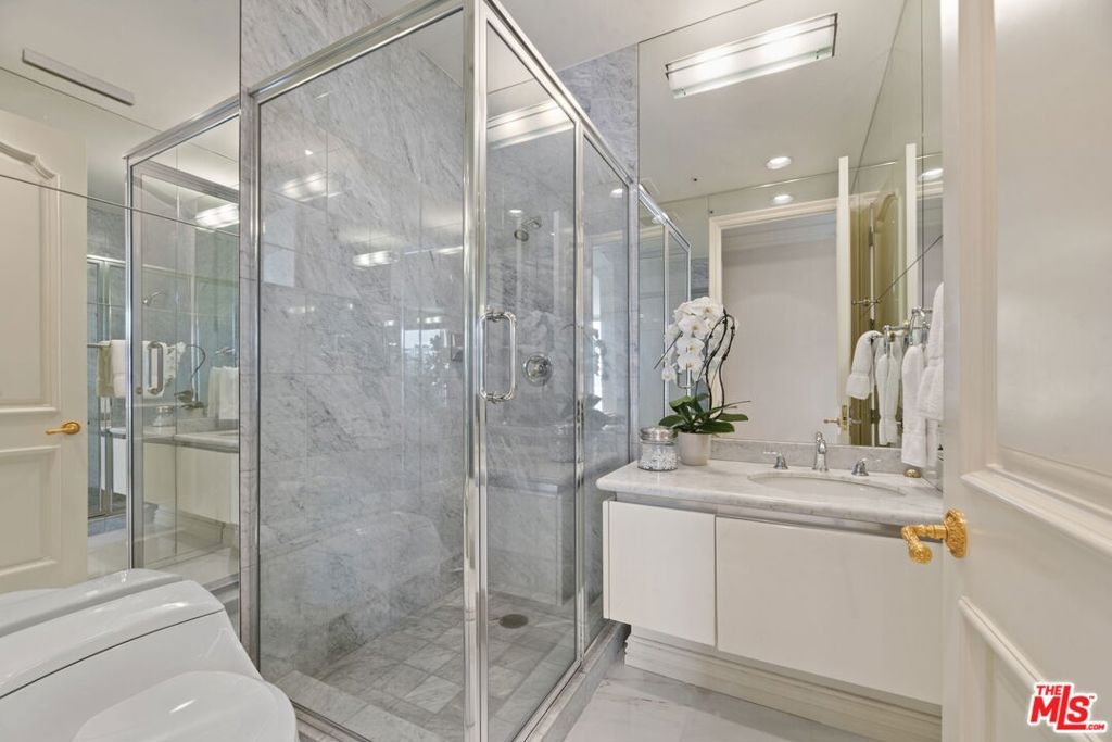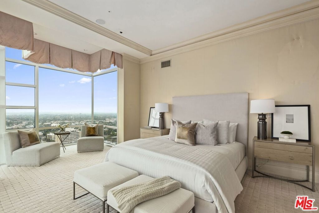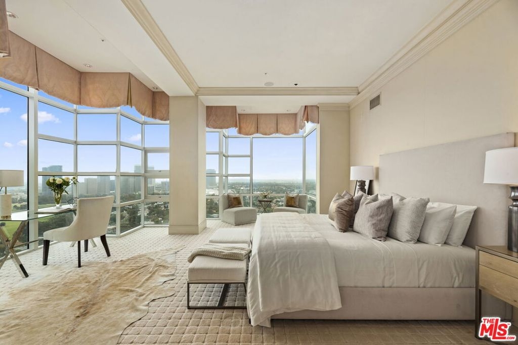 Estate Sale/Renovation Complete!! Priced to move at auction pricing, this is by far the best value on Wilshire. This location near Beverly Hills, towering floor level, views from downtown to the ocean, combined with game changing floor to ceiling glass make this an incredible opportunity!!! Single family homeowners will appreciate the luxurious estate like feel perched above LA Country Club and Club View Drive. Welcome to the stealth prestigious address of La Tour on the Wilshire Corridor, where sophistication meets comfort in this remarkable 2-bedroom, 2.5-bath residence with three separate entrances. Spanning an expansive 3,143 square feet, this one of a kind property offers a lifestyle defined by elegance and luxury. Upon entering this exquisitely designed corner unit, you are greeted by an abundance of natural light that floods through the floor-to-ceiling glass windows. The airy ambiance is complemented by two grand patios that invite you to bask in the breathtaking views of the LACC golf course, Beverly Hills, Century City, DTLA, and southwest to PV. The white marble floors and open floor plan seamlessly connect the living, dining, and kitchen areas, making it an entertainer's dream space or very comfortable living!. The architecturally pleasing living areas and primary suite make for a true sanctuary, only with a south facing corner layout. The primary bedroom faces DTLA and LACC South and features an extremely custom and spacious walk-in closet. Pamper yourself in the spa-like en-suite bathroom, fashioned with Lalique finishes and onyx counters. Beyond the spa bath you will find the home office which faces LACC North and the secondary bedroom suite. Note the secondary suite has three entrances: a separate entry from the building, entry off the main foyer, and entry from the primary suite if needed. Beyond the unit, the building offers a host of amenities, including a fitness center, pool, concierge services, and more, providing a seamless and luxurious living experience. With its prime east location on the iconic Wilshire Corridor, you'll have easy access to Beverly Hills, Century City, renowned dining, shopping, entertainment, and cultural attractions. The area's vibrant lifestyle is complemented by the serenity and tranquility offered by this one of a kind exclusive residence. Priced to sell over this asking price!!!
