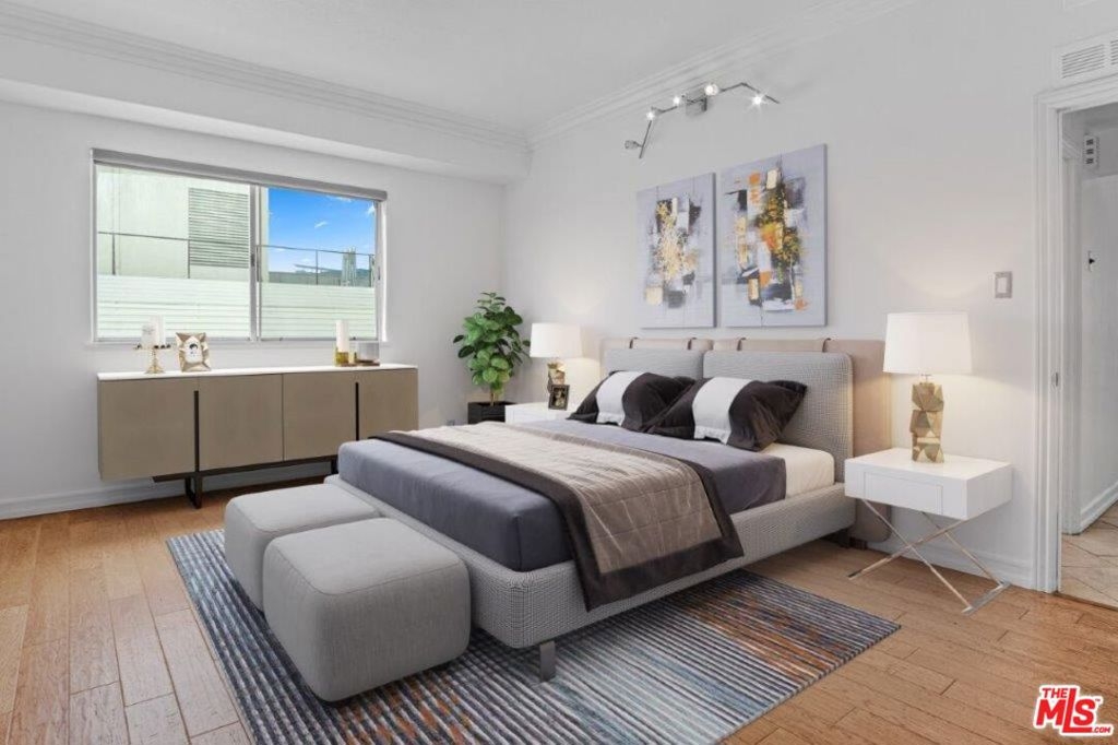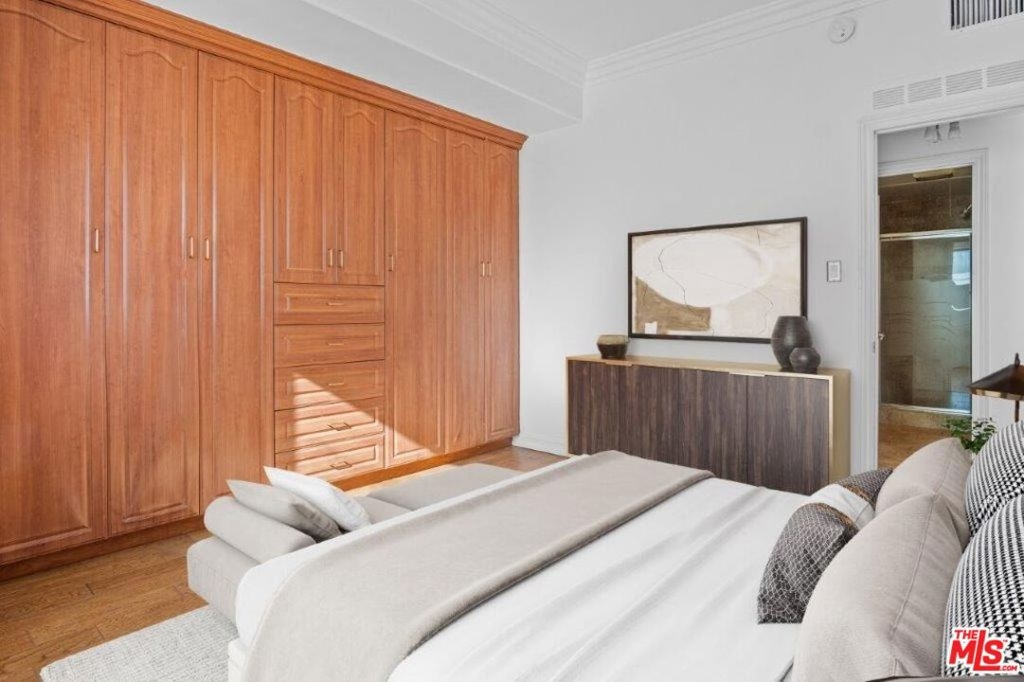 Designer done 3 beds/2 baths unit in a 24 hr doorman High Rise. Quiet North side of building with Incredible North, West, East views. Light & Bright unit with open floor plan and airy. Custom kitchen with granite counters, custom cabinetry, beautiful custom crown moldings, stainless steel appliances and breakfast bar. Large Living & Dining area. Large Master with master bath, spa and beautifully installed dark wood custom walk-in-closet. Large second bedroom with cabinets. Third bedroom has a walk-in-closet. 24HR Valet and concierge, ALL UTILITIES INCLUDED with the exception of Cable and internet. Building offers individual storage space in the garage. Gorgeous City Light Views of Holmby Hills and Westwood. Walking distance to Westwood and UCLA. Currently there is an assessment for elevator replacement of 237.05 till June of 2026.