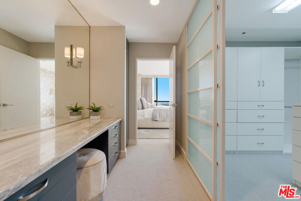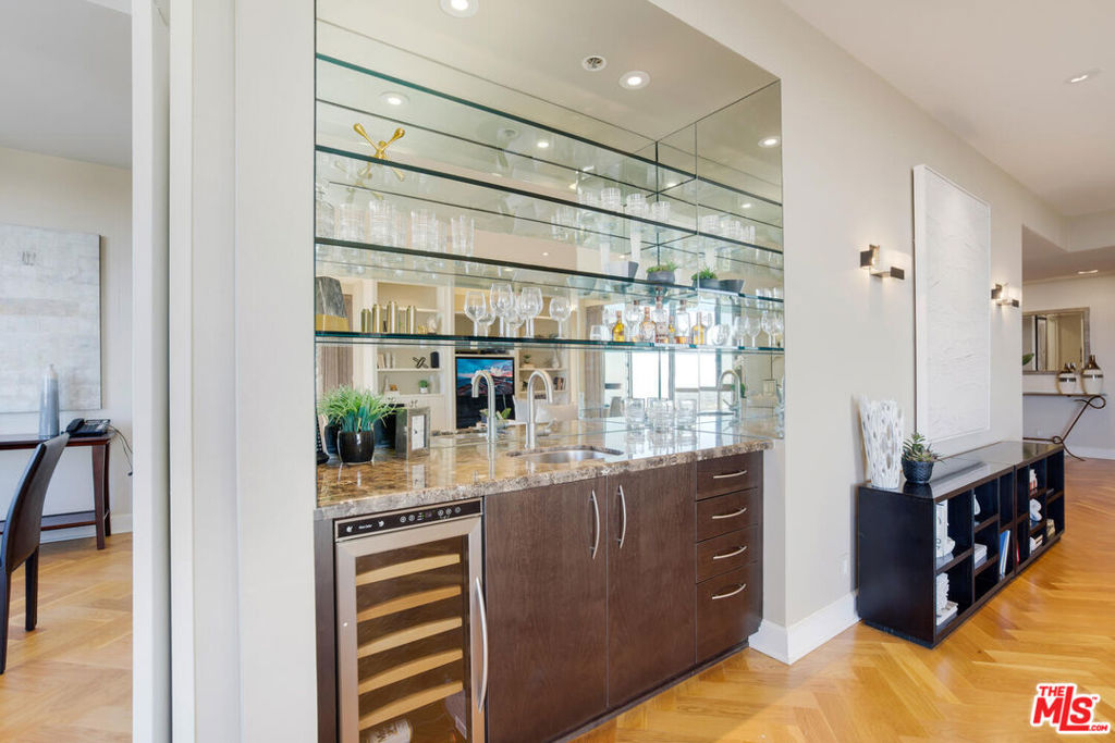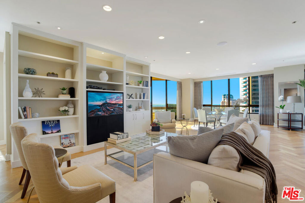 Heavenly views from this remodeled 2 bd/3 ba dream of a condo on the 19th floor of the Mirabella. Gracious entrance to a large, open living room looking out to magnificent, unobstructed views to the south (including downtown); west (to the ocean); and north to Little Holmby. Fabulous white oak floors enhance the warmth and design of the space along with automatic shades, and a generous patio accessible from living room and 2nd bedroom. Great built-ins throughout and huge walk in closet in elegant primary suite. 2nd bedroom is being used as office/den with it's own bath. Eat-in-kitchen has lovely granite countertops, glass backsplash, and laundry area. Special Assessment has been paid for new elevators which are in the process of being replaced; new carpet and wallpaper in hallways, new roof and more.