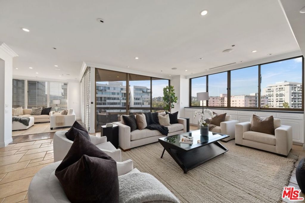 Chic and sophisticated 2 br./3 bath unit in a prime location in The Mirabella. Sensational flow with an open floor plan. Living room, Dining area, family room, cooks kitchen, fabulous master bedroom with great closet space. Walls for artwork, walls of glass, balconies with mountain and also ocean views. Light, bright, over 2800 square feet in this full - service building in an ideal location on the corridor just minutes from Beverly Hills or Westwood. Move in.