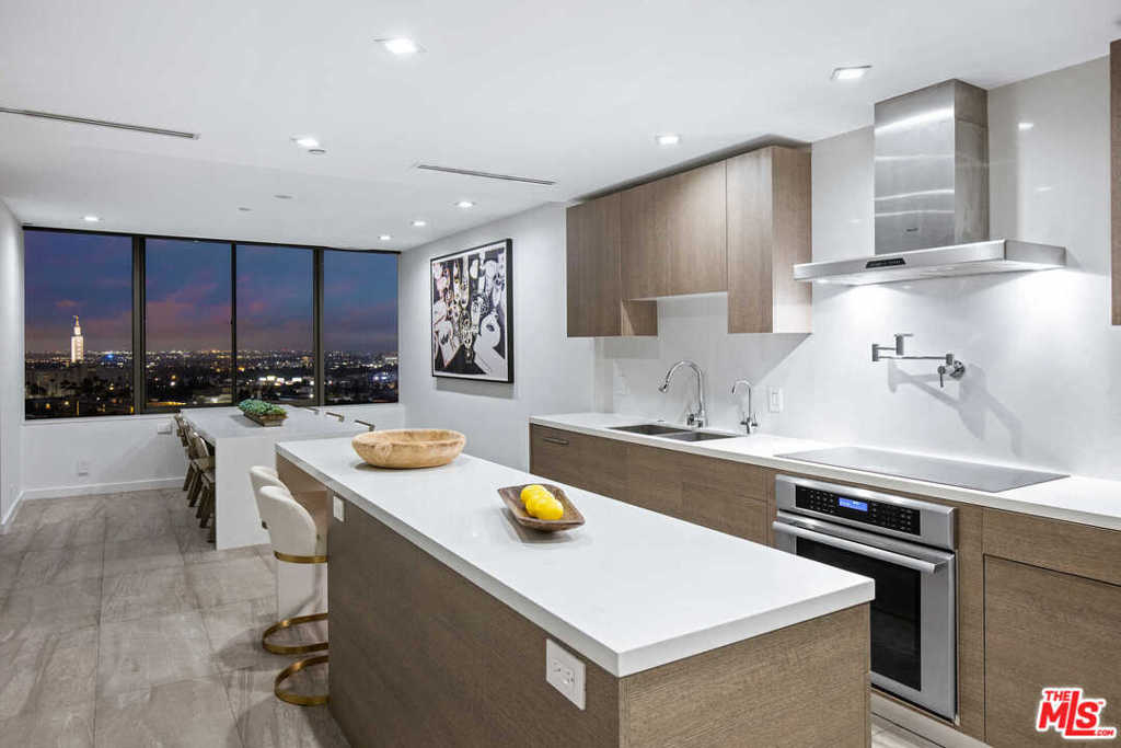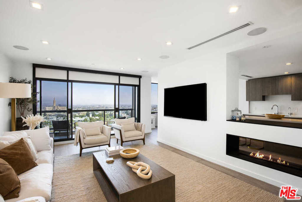 Meticulously remodeled, with no expense spared, designer-done unit, located in the prestigious Park Wilshire, boasting incredible unobstructed panoramic views from the city to the ocean. Situated on the favorable South side of the building this unit provides light-filled, lateral living at its finest. A formal entry leads to a generous-sized living room with large balcony, fireplace, and den area with custom built-ins, flexible to be used as a formal dining area or office. An open plan kitchen adorned with custom cabinets, Thermador appliances, oversized island, built-in Caesarstone table, wine fridge and an ample pantry/storage area with washer and dryer. Primary suite offers automated blackout and sheer blinds, oversized shower, separate tub, vanity with dual sinks, and an enormous walk-in closet with custom cabinetry and center island. The Park Wilshire provides hotel-like service with 24-hour security, concierge, doorman, valet parking, gym, heated pool/spa set within gorgeous, lan