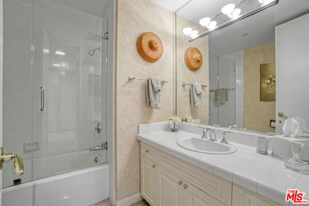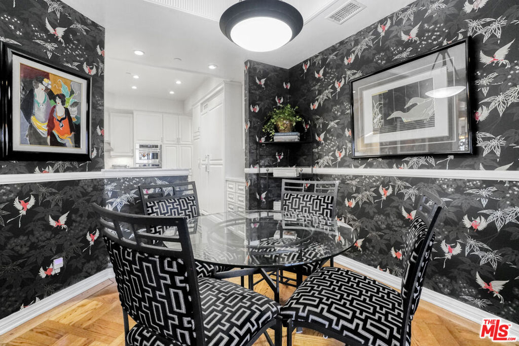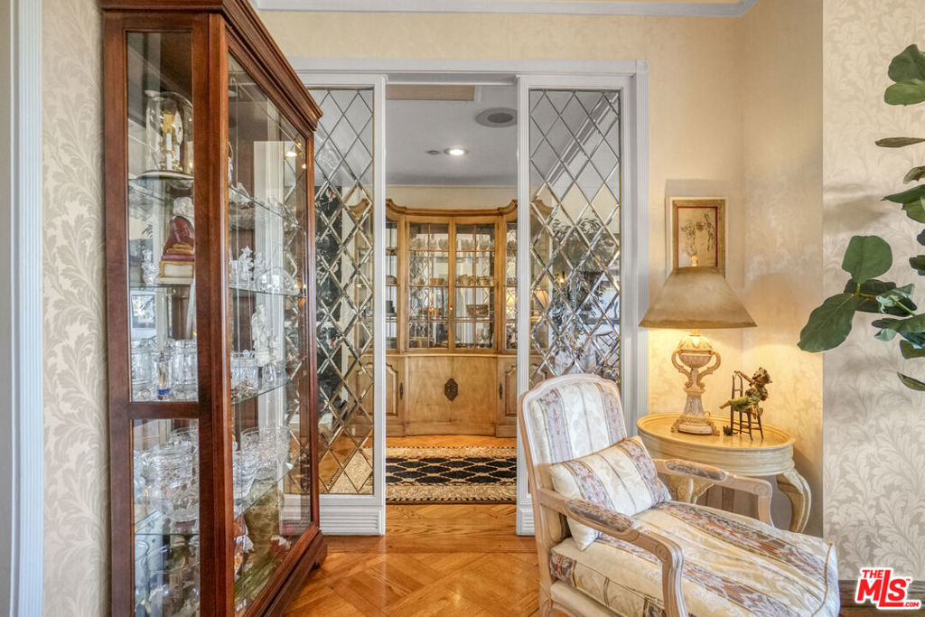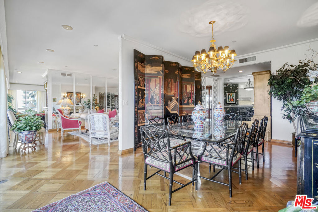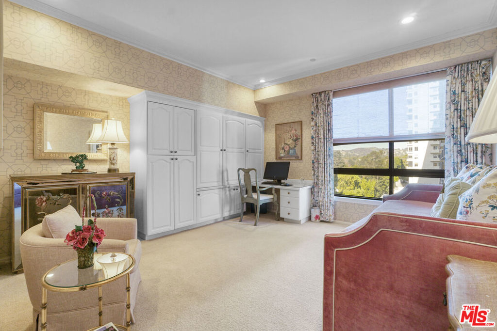 Enter this warm and welcoming corner unit streaming with natural light. Gracious Living Room with fireplace and Formal Dining room open to a generous balcony, Den with wet bar complete the entertaining areas all with oak parquet wood flooring. Sweeping northerly views of Westwood Hills, Bel Air and the Getty. Newly remolded Kitchen features Convection/Microwave oven, Viking induction cook top, dishwasher and brand-new Fisher&Paykel built in Refrigerator/Freezer. Separate laundry room with service entrance. In addition, there is a lovely Breakfast room. Spacious Primary Bedroom with newly remolded Bath, includes double vanity with backlit Cristalo Marble. Marble countertops and under cabinet automatic lighting. Separate Shower and soaking tub. Second Bedroom suite, includes built in cabinets and desk. Motorized shades are in Dining Room, Living Room, Den, and Primary Bedroom. Separate storage locker, Side by side parking. Furniture can be sold separately. HOA Dues include: Water 24 Hour Concierge, Valet, Pool, Sauna, Gym, Recreation Room, and Basic cable. Trust Sale no court conformation. 24 Hour notice to show Text Agent.