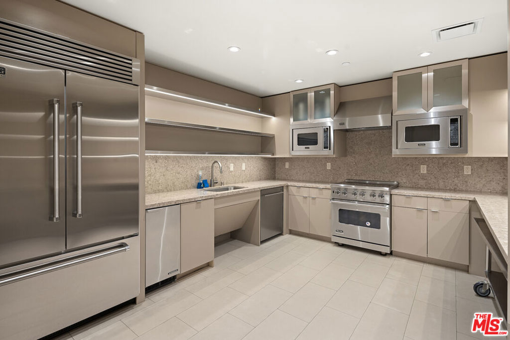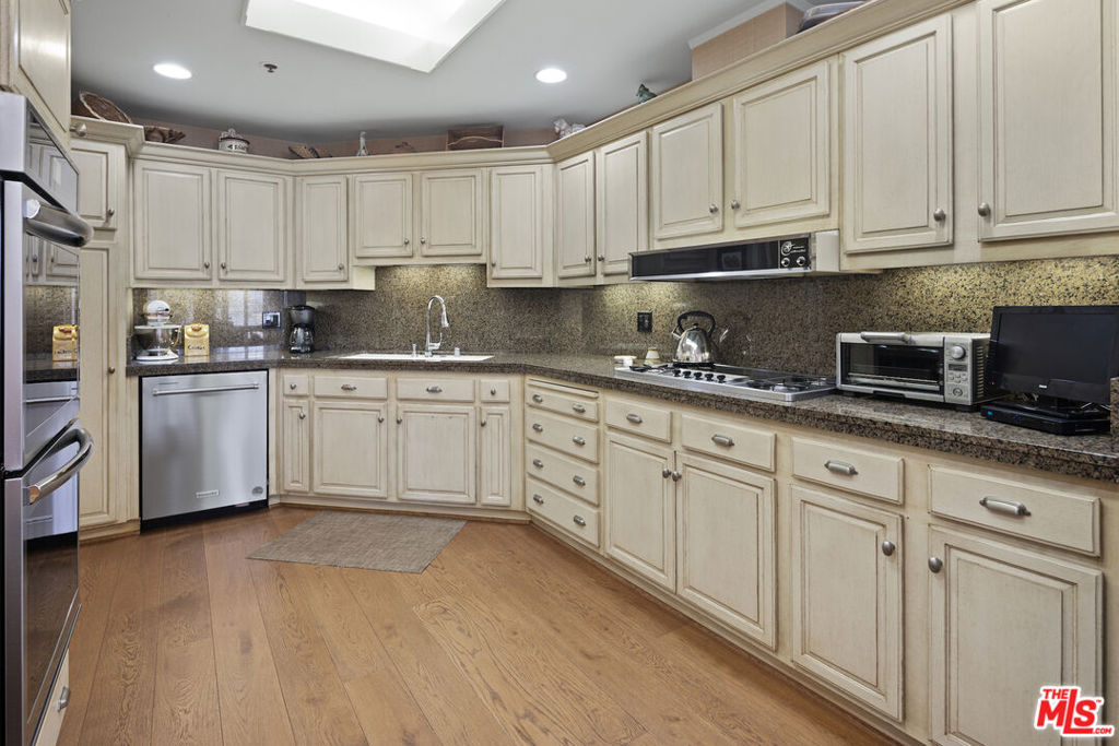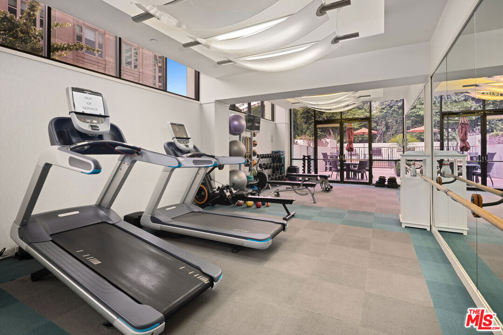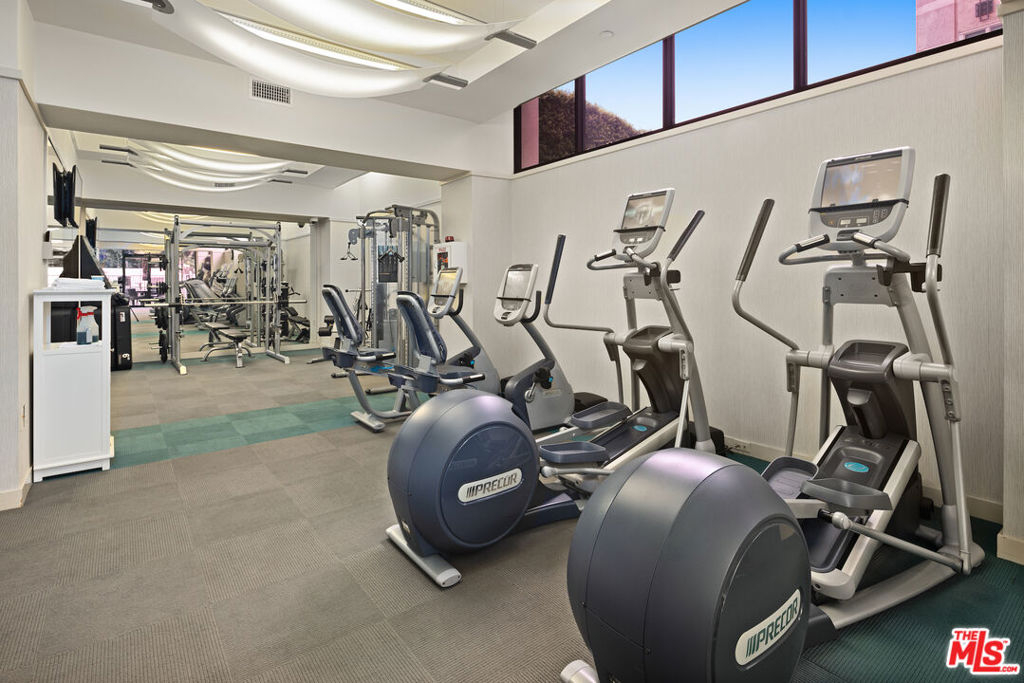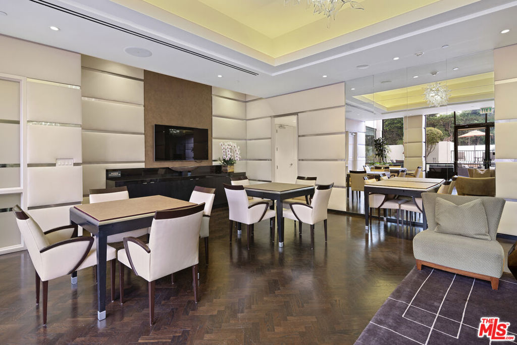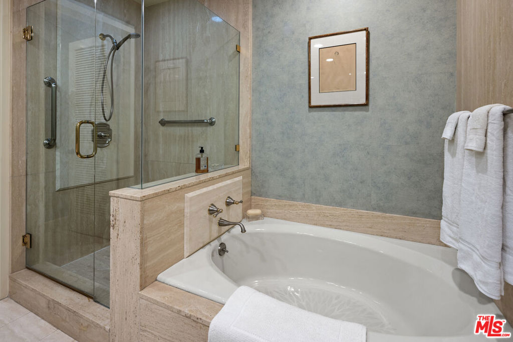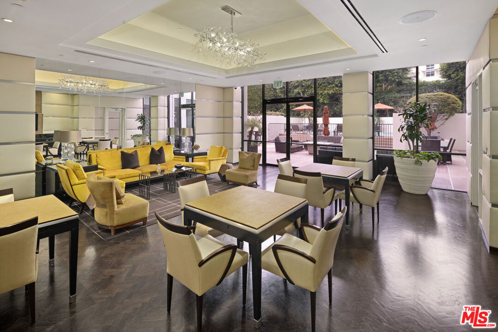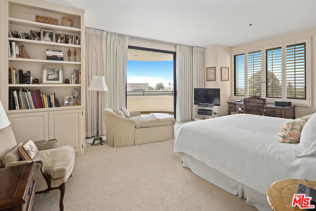 Introducing this South/East facing, 1828 sq ft, 2 Bed, 2.5 Bath, warm and inviting Condominium in the prestigious Ten-Five-Sixty building on the Wilshire Corridor. Well known for exceptional services and amenities, the beautifully renovated Lobby/Lounge area welcomes you home to your quiet retreat away from the busy sounds of the city. Entering through double doors, the recently refreshed kitchen highlights granite counters, new appliances, and wide plank wood floors, color coordinated to the custom cabinet finish. This special corner unit enjoys a spacious living room/open dining area, high ceilings, crown moldings, large windows, a cozy fireplace, and a sliding glass door that leads to one of two balconies that overlook treetops, enchanted by views of the Century City skyline. A large en-suite primary bedroom, with abundant closets, a second balcony and an elegantly appointed bathroom awaits those private times to look forward to. The en-suite second bedroom offers the opportunity to be multi-functional as a guest bedroom, office, or den and features a beautifully appointed, custom-built-in wall complete with desk and shelving storage space in warm wood tones. This exceptional place to call home includes an elegant powder room, a dedicated laundry room with a stackable washer/dryer, and additional storage to make this "home sweet home" complete. Residents of the Ten-Five-Sixty building enjoy 24-hour Valet, Concierge, Fitness Room, Pool, Spa, Social Room (with catering kitchen), EV Charging, two deeded parking spaces, plus additional assigned storage and on-site management. HOA dues include all amenities, water, trash, gas, and basic cable TV. Most conveniently located to shopping, dining, and the busy business district areas of Westwood, Brentwood, Santa Monica, and Beverly Hills. Units in this highly coveted building do not come along often. With security and service in mind, the exceptional staff of the Ten-Five Sixty building are here to meet your everyday needs.