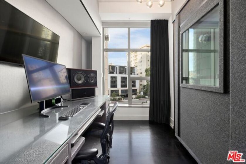 Residence 403 at The Carlyle offers a rare blend of privacy, design, and full-service luxury living within one of Los Angeles' most iconic buildings. Completely remodeled and offered fully furnished with custom pieces from Roche Bobois and Visionnaire, this residence is accessed by a private elevator foyer that opens directly into expansive living and dining spaces with nearly eleven-foot ceilings, rich wood flooring, custom built-ins, and a striking onyx fireplace. The chef's kitchen features Sub-Zero and Miele appliances, a dedicated espresso station, and a Snaidero design highlighted by a dramatic Panda marble waterfall island. The primary suite is designed as a private retreat with an oversized custom walk-in closet and a spa-inspired bath showcasing an Unbescheiden soaking tub imported from Germany, sculptural stone surfaces, TOTO toilets, and Swarovski crystal fixtures. Additional highlights include a private salon and wellness suite with infrared and traditional saunas, advanced European spa technologies, and a fully soundproofed professional recording and production studio. The residence is equipped with a fully integrated smart home system, surround sound, and security. Building amenities include 24-hour concierge and valet, a residents' lounge by Fendi Casa, a fitness center with Pilates reformer, a temperature-controlled wine cellar with private lockers and dining room, a landscaped outdoor terrace with pool and spa, and dedicated on-site staff. Ideally located along the Wilshire Corridor near UCLA, Beverly Hills, Bel Air, and Santa Monica.