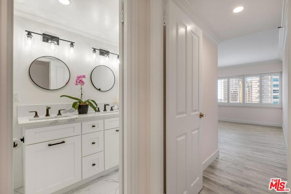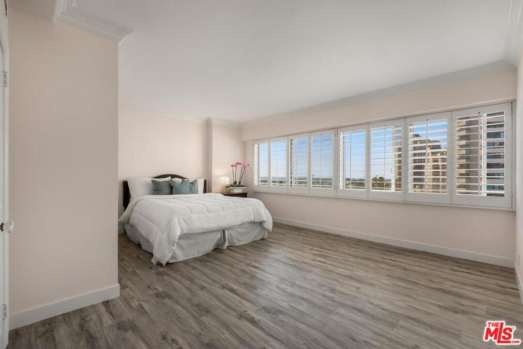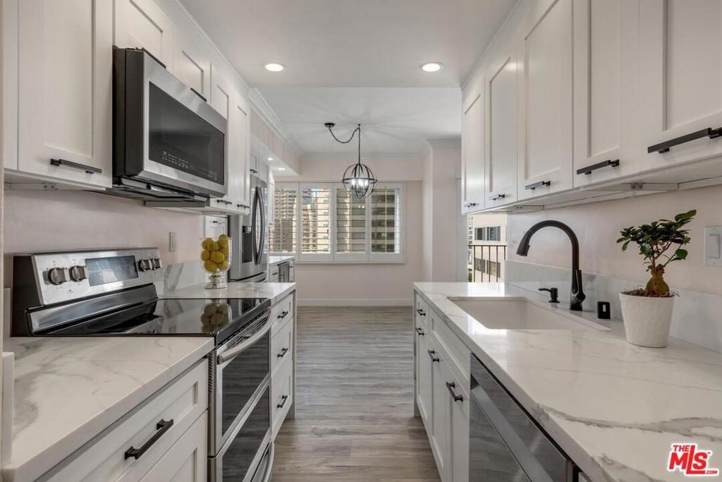 Be the first to enjoy this newly head-to-toe remodeled unit in The Churchill, a full-service, classic Mid-Century building on the Wilshire Corridor. This highly coveted South-West facing unit boasts expansive city views with a ton of natural sunlight. Open concept floor plan with plantation shutters throughout leading to a large balcony off the living room to watch the sunset. Quartz countertops in kitchen and bath, brand new stainless steel refrigerator, electric range, and microwave. Tons of storage and built-in cabinetry in the breakfast area including a wine cellar. Double vanity sinks in bathroom with rain shower and handheld combo and porcelain tile floors. Spacious bedroom with plenty of closet space. Additional closets throughout. W/D included in unit, extra storage in garage included. Full-service building w/24-hr security, valet, gym, sauna, rec room, and gorgeous pool. HOA dues include utilities, cable & amenities. Central location can't be beat- close to UCLA & Westwood Village and Beverly Hills.
