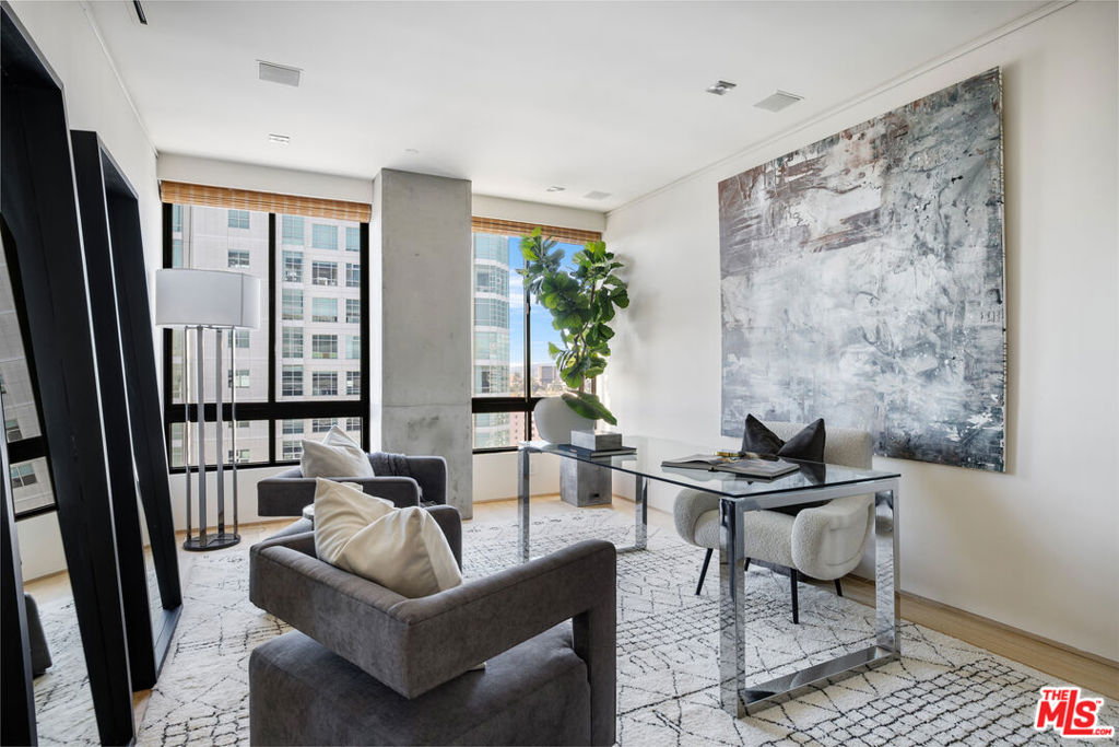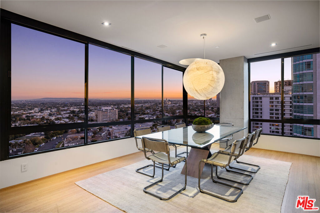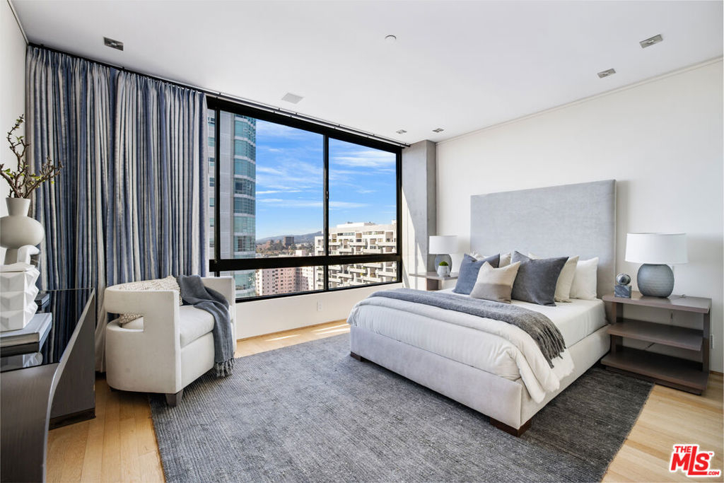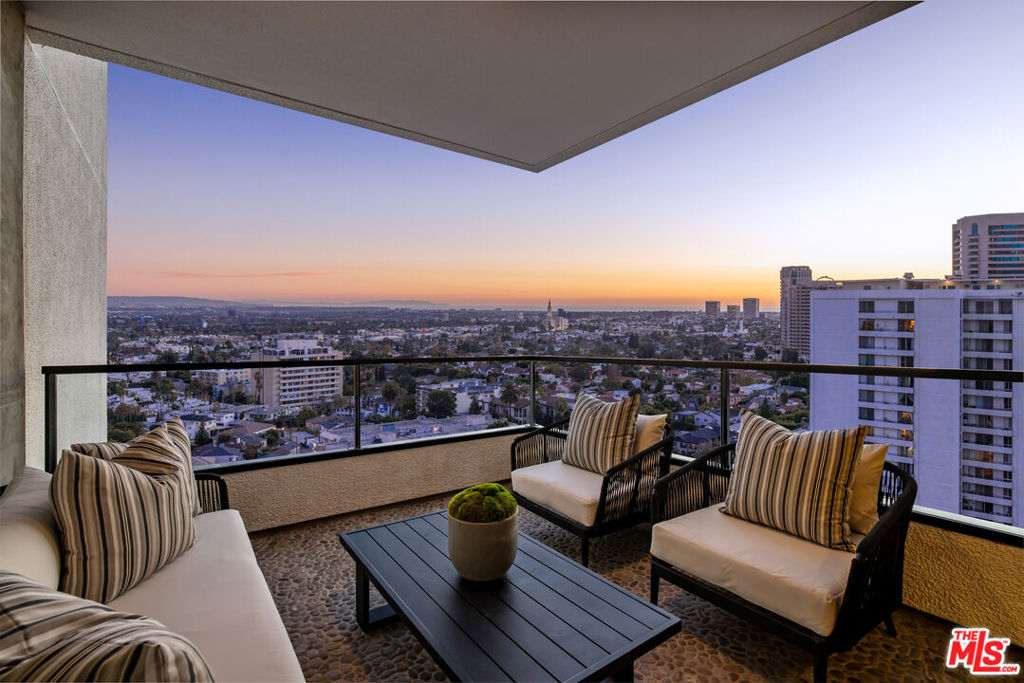 Elevate your luxury lifestyle with this 15th floor rare jewel in the highly desired Diplomat hi-rise, a 24-hour full-service building on the coveted Wilshire Corridor, adjacent to Century City and Beverly Hills. This southwest facing corner unit is almost 2,400 square feet with two bedrooms, three bathrooms, plus an office which could function as a third bedroom. The residence is adorned with floor to ceiling glass that showcases 280 degrees of breathtaking panoramic city, ocean, and mountain views which include the Center City skyline, The Queen's Necklace, Palos Verdes, Catalina continuing all the way to Malibu. Upon entering this impeccably designer done turn-key move-in ready property, you are met with solid rift oak wood flooring, high ceilings and a modern open floor plan flooded with seemingly endless sunlight. The oversized living room features an ethanol clean burning ventless fireplace which flows out to a spacious corner balcony and a full-sized formal dining area with wrap-around windows allowing you to enjoy ocean vistas during the day and unparalleled city light views at night. Continuing to the gourmet kitchen which consists of European custom-built-ins/cabinetry, a Thermador electric cooktop, Gaggenau double wall ovens, brushed stainless steel Liebherr refrigerator, freezer and built-in wine refrigerator which all surround a large waterfall center island. The primary suite is a sanctuary retreat with more floor to ceiling windows, opulent drapery, multiple closets, and an en-suite resort sized primary bathroom showcasing hand cut stones, charcoal stacked walls, rift oak trim, floating cabinetry with double sinks, private water closet, double steam shower, and large bathtub. The guest suite has large picture windows too, drapery, and an en-suite bathroom featuring a large walk-in shower, floating storage with a glass-top vanity, all surrounded by Japanese hand screened wallpaper. In addition to the two-bedroom suites, there is a large window walled office with a wet bar and commanding views. There is a dedicated laundry room, custom accented powder room, plus the entire unit is outfitted with motorized automatic roller shades, adding to the long list of features. There are two deeded side-by-side parking spaces and a deeded storage area too. The Diplomat is a sophisticated building which complements this unit's lavish lifestyle. Amenities include 24-hour valet service, front desk, security, a recreation room, all-inclusive gym, a sundeck, a heated pool, cabanas, and spa/hot tub. Plus, living on the illustrious Wilshire Corridor provides convenient access to all of Los Angeles which includes nearby world class shopping and dining in Century City and Beverly Hills.