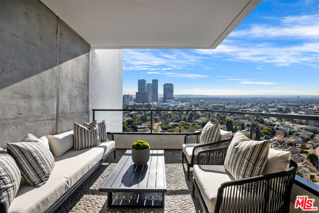 Elevate your luxury lifestyle with this 15th floor rare jewel in the highly desired Diplomat hi-rise, a 24-hour full-service building on the coveted Wilshire Corridor, adjacent to Century City and Beverly Hills. This southwest facing corner unit is almost 2,400 square feet with two bedrooms, three bathrooms, plus an office which could function as a third bedroom. The residence is adorned with floor to ceiling glass that showcases 280 degrees of breathtaking panoramic city, ocean, and mountain views which include the Center City skyline, The Queen's Necklace, Palos Verdes, Catalina continuing all the way to Malibu. Upon entering this impeccably designer done turn-key move-in ready property, you are met with solid rift oak wood flooring, high ceilings and a modern open floor plan flooded with seemingly endless sunlight. The oversized living room features an ethanol clean burning ventless fireplace which flows out to a spacious corner balcony and a full-sized formal dining area with wrap-around windows allowing you to enjoy ocean vistas during the day and unparalleled city light views at night. Continuing to the gourmet kitchen which consists of European custom-built-ins/cabinetry, a Thermador electric cooktop, Gaggenau double wall ovens, brushed stainless steel Liebherr refrigerator, freezer and built-in wine refrigerator which all surround a large waterfall center island. The primary suite is a sanctuary retreat with more floor to ceiling windows, opulent drapery, multiple closets, and an en-suite resort sized primary bathroom showcasing hand cut stones, charcoal stacked walls, rift oak trim, floating cabinetry with double sinks, private water closet, double steam shower, and large bathtub. The guest suite has large picture windows too, drapery, and an en-suite bathroom featuring a large walk-in shower, floating storage with a glass-top vanity, all surrounded by Japanese hand screened wallpaper. In addition to the two-bedroom suites, there is a large window walled office with a wet bar and commanding views. There is a dedicated laundry room, custom accented powder room, plus the entire unit is outfitted with motorized automatic roller shades, adding to the long list of features. There are two deeded side-by-side parking spaces and a deeded storage area too. The Diplomat is a sophisticated building which complements this unit's lavish lifestyle. Amenities include 24-hour valet service, front desk, security, a recreation room, all-inclusive gym, a sundeck, a heated pool, cabanas, and spa/hot tub. Plus, living on the illustrious Wilshire Corridor provides convenient access to all of Los Angeles which includes nearby world class shopping and dining in Century City and Beverly Hills.