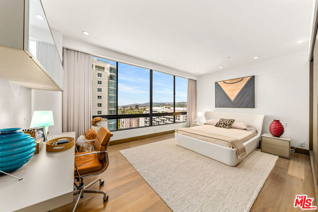 Junior PENTHOUSE with compelling south-west corner views extending from Century City to the Ocean. This residence is a true masterpiece in pristine condition, having been completely remodeled by the current owner; since that time used just infrequently as a guest unit. Curated with best in class materials and finishes, the public rooms are published-quality, light-filled spaces, evocative of a contemporary museum's reading room...from the cabinetry, to the mouldings, doors and meticulously crafted millwork, a home without peer, updated with no expense spared. The warm modern palette provides an ideal backdrop for sophisticated luxury, with floor-to-ceiling windows and the cherished rear corner views capture, dazzle and delight at every turn. A formal entry with stylish powder room leads to an open concept plan, with large living room featuring a fireplace, walls for art, beautiful built-in library bookcase with rolling ladder, all flowing to a large view terrace. The gourmet kitchen features top flight cabinetry and trophy appliances. The adjacent dining room can accommodate large formal gatherings while overlooking the City. Two perfectly appointed bedroom suites, including a luxurious primary suite, worthy of a 5-star resort with 4 closets, incredible bathroom with oversized shower, tub and separate water closet, plus a guest bedroom suite with a beautiful bath. All of this, plus a large, separate den/study. Additional state of the art features include: custom auto window treatments, fully outfitted closet spaces, recessed lighting, laundry room, updated dual zone HVAC system and electric car charger. The Diplomat is a full-service building featuring 24-hour front desk/security, valet parking, gym, pool, spa, extra storage and only four units per floor. HOA dues are $3,208/month and include earthquake insurance, water and building amenities. A rare find in today's market where condos typically need extensive work or are formulaic, tiresome spec-flips with finishes that will feel outdated in only a few years.