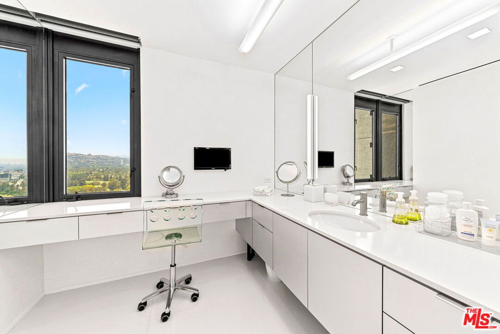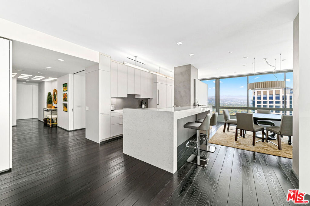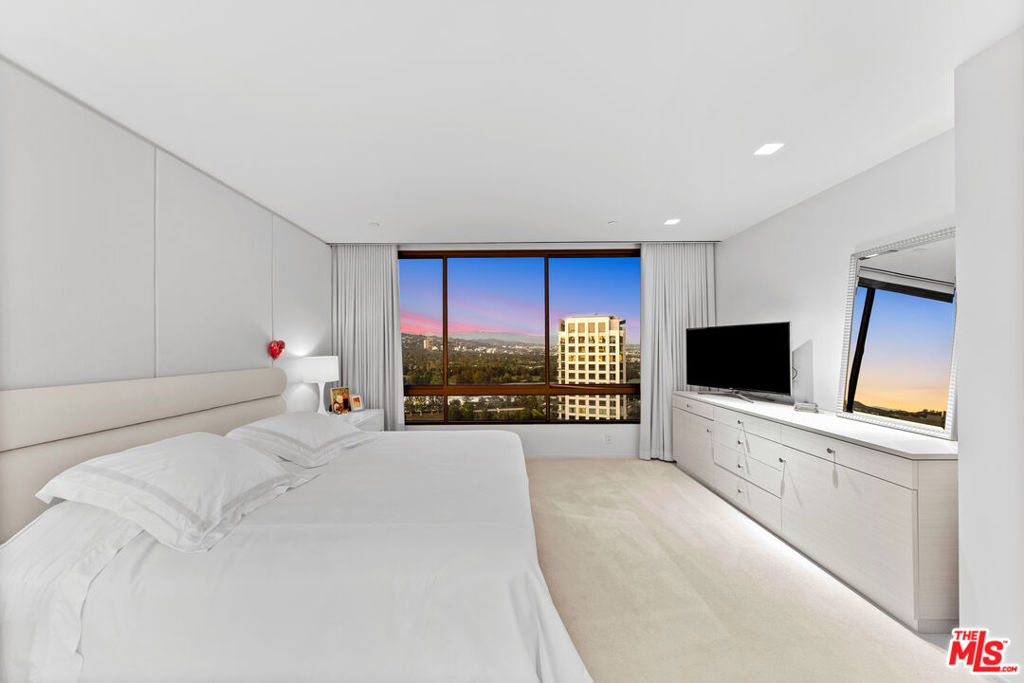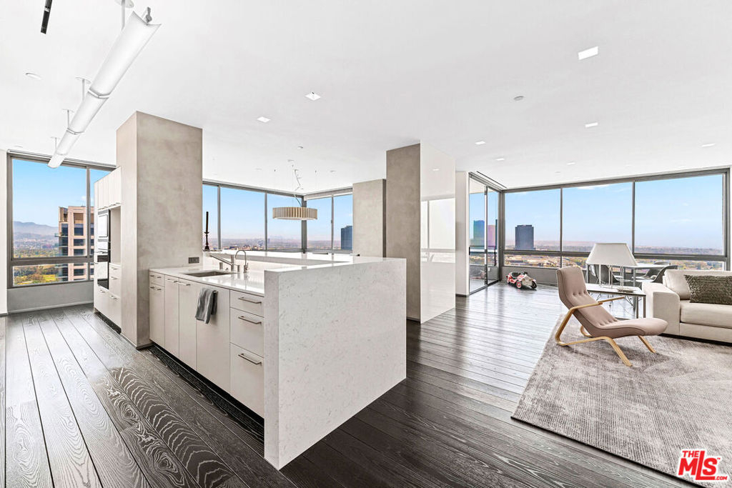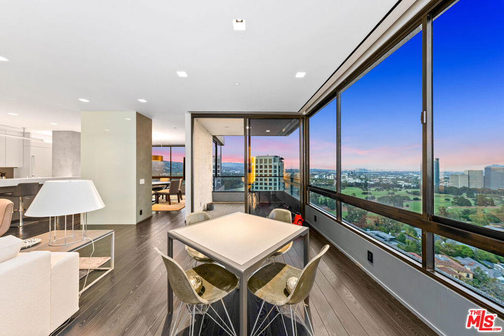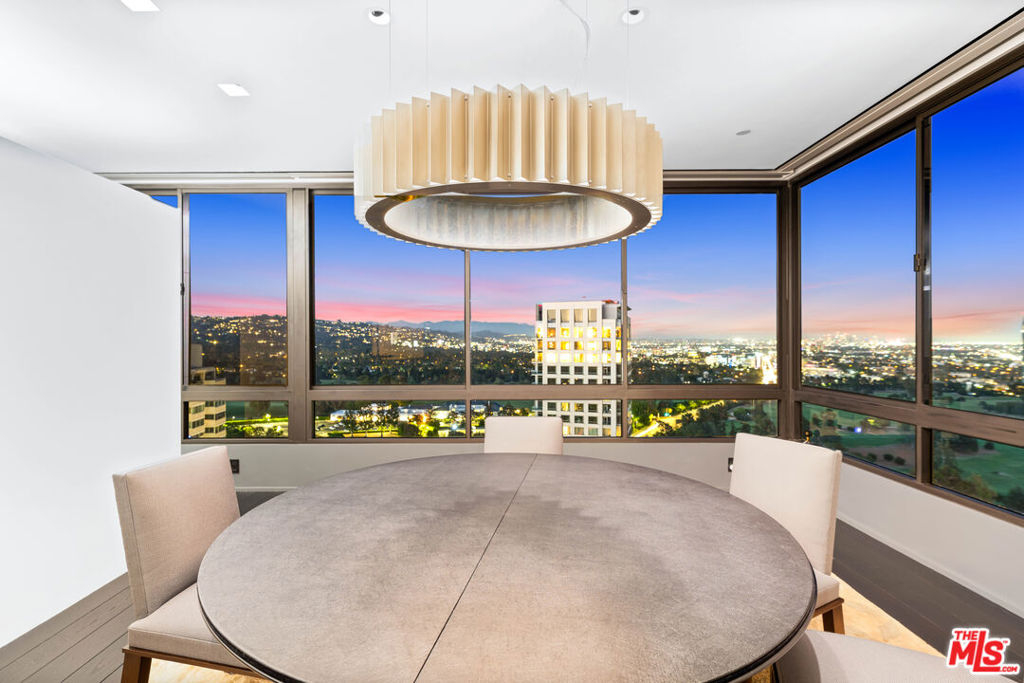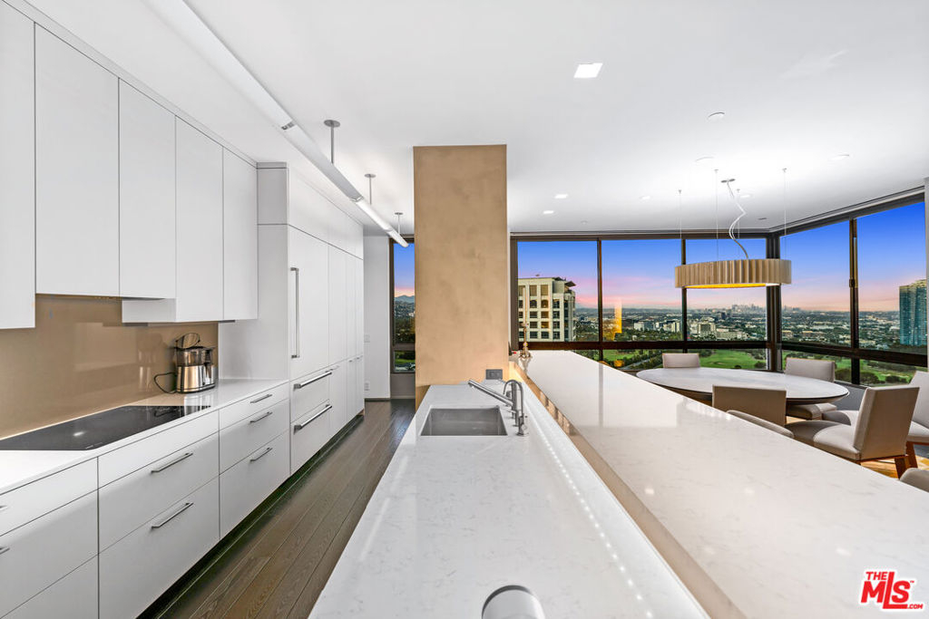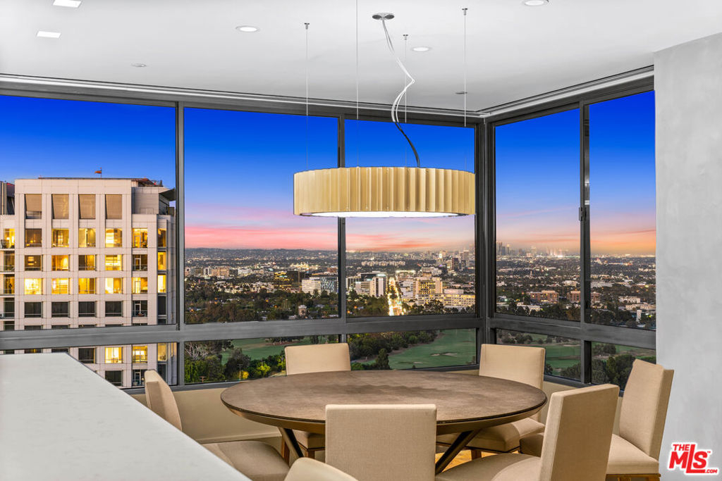 This sleek sophisticated unit in The Diplomat is in triple mint condition. Newly renovated the spacious three bedroom three bath unit located in the coveted south/east corner of the building boasts designer top of the line finishes throughout. From the moment you enter this sun-filled Penthouse unit, one is struck by the expansive open floor plan, the high ceilings, the floor to ceiling windows and spectacular panoramic views! The wraparound windows allow for 270 degrees of openness that offers sights of mountains, downtown Los Angeles and Catalina Island. A private terrace is perfect for a small garden and patio furniture. The gourmet Poggenpohl kitchen consists of a Bosch dishwasher, Sub-Zero refrigerator, Wolf oven and microwave, induction cooktop, and an Osmosis purified drinking water. In the evening a corner dining room overlooks the sparkling lights of Century City. All windows have Lutron electric shades and blackout curtains. Custom soundproofing throughout provides a quiet oasis. The third bedroom fitted with built-in cabinetry can be used as a study/office. The second bedroom has large custom closets and a full private bath. The spacious primary bedroom comes with a custom fitted walk-in closet and huge windowed bath. The apartment comes with two side by side parking spaces and a storage closet. Electric charging space is available. The Diplomat is a full service building with a recreation room, fully equipped gym, sundeck, heated swimming pool and Jacuzzi. Do not miss out on your chance to live in one of the most prestigious units on the Wilshire corridor!