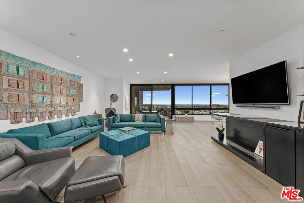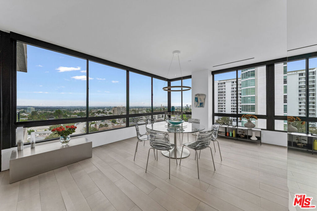 Sleek, sophisticated residence at The Diplomat, curated and painstakingly renovated by the current owners for their own use. Clean lines, designer fixtures, art lighting and floor-to-ceiling windows with the cherished Southwest/rear corner views capture, dazzle and delight at every turn, all keyed to a true modernist aesthetic, worthy of a fine contemporary art collection. A formal entry with stylish powder room leads to a light-filled open concept plan, with large living room-dining room featuring built-in bar with wine and beverage fridges, clean burning fireplace, auto shades, art walls and thoughtful lighting, flowing to large terrace and views extending from Century City to the ocean. The flawless, gourmet kitchen features top flight cabinetry and superb trophy appliances, with thoughtful touches for seamless living, anchored by a center island with custom steel counters and seating. The adjacent corner dining room can accommodate large formal gatherings while overlooking the City. A flexible bedroom configuration provides a luxe primary bedroom suite with 4 closets, opulent bath with oversized shower and separate water closet, plus a guest bedroom suite with beautiful bath. The separate den/sitting room/office/3rd bedroom is perfectly located between the bedrooms providing several living options. Additional state of the art features include: under cabinet lighting, back lit mirrors, fully outfitted closet spaces, laundry room, linear heat/air vents and dual zone HVAC systems. A true masterpiece, making this a rare find in todays market where condos typically need extensive work or are formulaic, tiresome spec-flips. The Diplomat is a full-service building featuring 24-hour front desk/security, valet parking, gym, pool, spa, extra storage and only four units per floor. HOA dues are $3,062/month and include earthquake insurance, water, cable, internet, and building amenities.