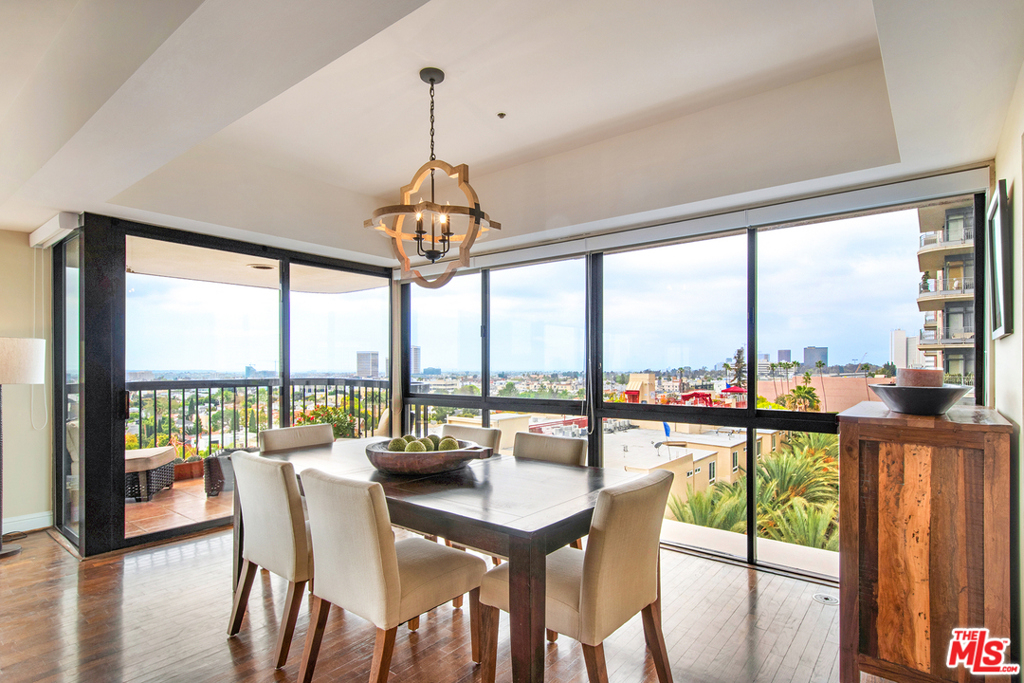 Offers presented as received. Dramatic views from this stunning remodeled designer-inspired 6th floor full-service luxury residence in THE LONGFORD on the Wilshire Corridor. Enter into your formal foyer and experience an open floor plan living room & dining room with floor to ceiling windows throughout; replete with natural light and calming views of the city, mountains and ocean this corner unit is a gem! From the main living area enjoy a large corner balcony and its unrestricted views. A spacious living room allows for an office area that takes advantage of views & natural light; beautifully dark-stained hardwood floors throughout; Remodeled eat-in kitchen w/granite counters; Bosch & Thermador stainless steel appliances & an adorable curio/end cabinet for added display or utility; large separate laundry room. Sizeable suite w/full bath is a perfect 2nd bedroom or family room/den or office space; Master bedroom suite w/sitting area; 2 walk in closets & 3rd closet; spa-like ensuite bath w/tub & glass enclosed shower; double vanity and ample cabinet space; HOA covers EQ insurance & water/cable; Full-service bldg. w/controlled access/doorman/concierge service, luxurious club room w/kitchenette for entertaining larger parties; gym, pool, spa, sauna, lovely courtyard & 2 parking spaces & valet parking.