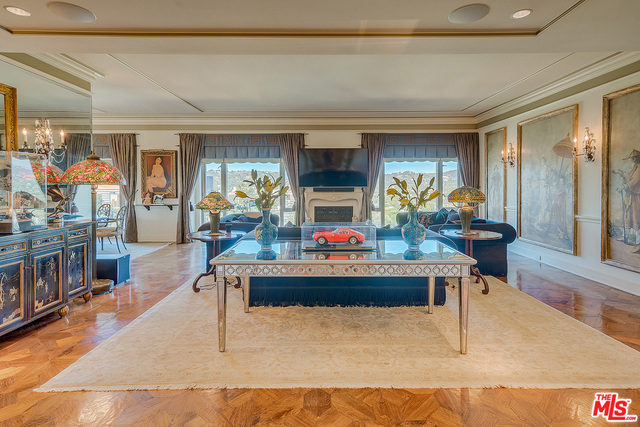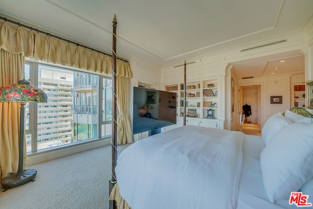 Resting high atop one of Wilshire Corridor's most coveted high-rise residences, this private retreat, owned by esteemed film producer Jon Peters, offers a rare opportunity to access the privacy, glamour and prestige of the Hollywood high life from the 19th story of "The Remington". Direct elevator access invites one into this 3 bedroom, 3.5 bathroom East, West and North facing unit featuring over 3,200 square feet of luxury living. Bathed in natural light, the sweeping floor plan delivers captivating mountain, city and ocean views. Floor to ceiling windows, parquet wood floors, built-in shelving, magnificently crafted crown molding and custom wall paneling can be found throughout, exemplifying traditional elegance at its finest. Building amenities include valet parking, concierge, gym, library, card room, pool, storage and temperature controlled wine cellar. An unmatched level of luxury & class.