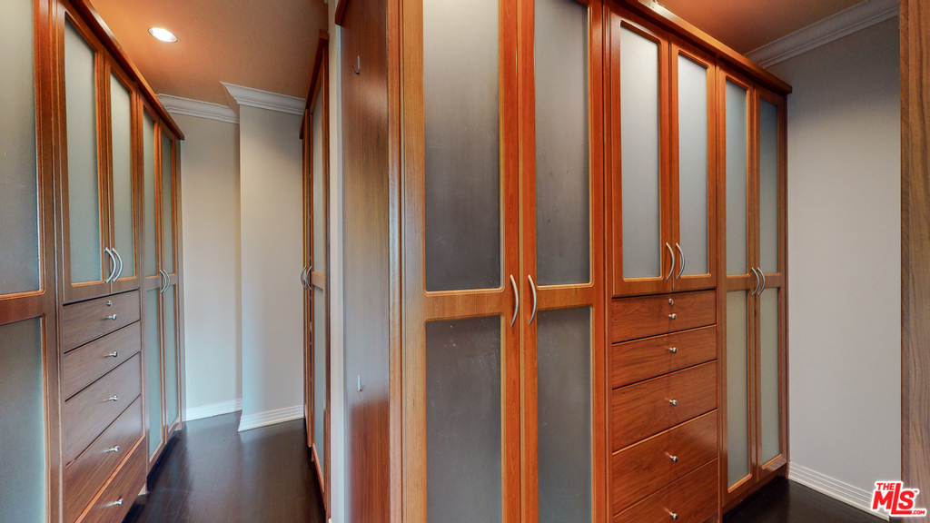 North Facing (rear) Condominium at The Remington, one of most famous and opulence, a full-service building pristinely situated within the Wilshire Corridor. Private elevator access directly to the grand foyer. With 10' floor to ceiling windows, provide a treetop & Bel Air mountain view. Amazing Living Room, contemporarily decorated with designed alcove for art collections, recessed lighting & lit walls and floors, with Lutron, a one-touch lighting system. The Master Suite w/ Los Angeles tree tops serene view, custom Walk-In Closet & a spacious Master Bath. Hardwood Floors throughout. Built-in A/V. Gourmet kitchen, Sub-zero, Granite Counters & contemporary Stainless Steel backsplash. Stunning Powder Room with Glass Walls, 2nd en-suite Bedroom, Laundry room w/ Service Entrance. The Finest of Full-Service properties with 24/7 Valet & Concierge, a full Gym, heated Swimmer's Pool, Banquet Room, Wine Storage & Library.