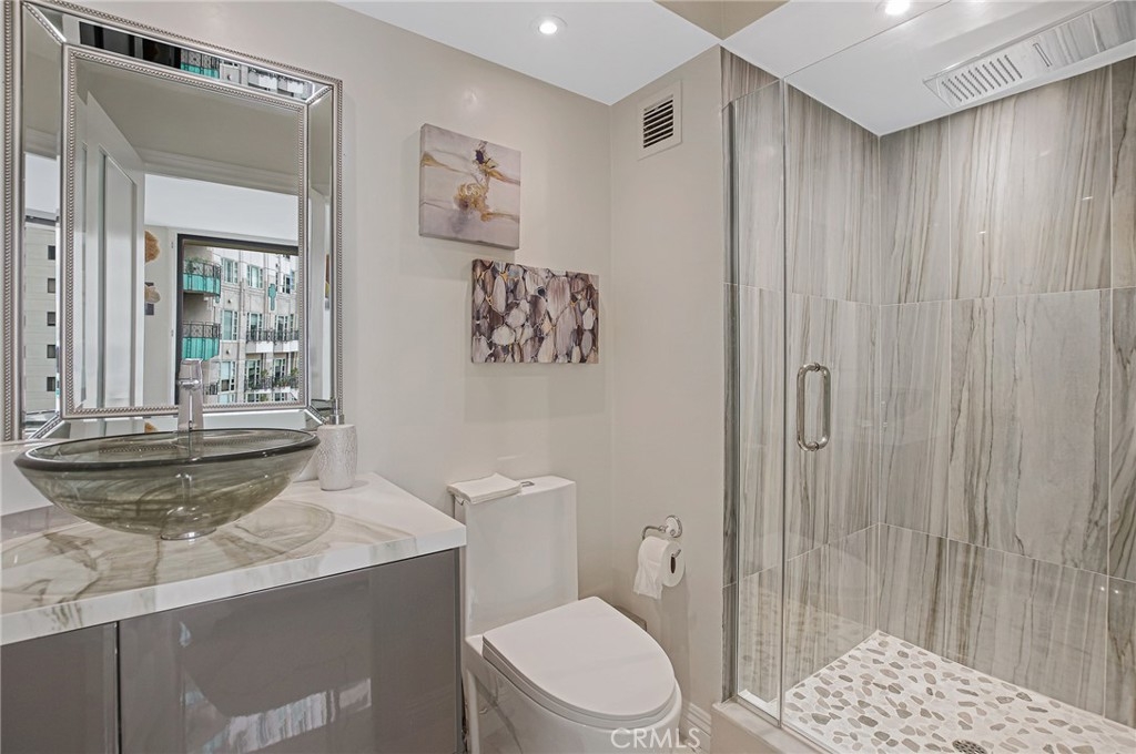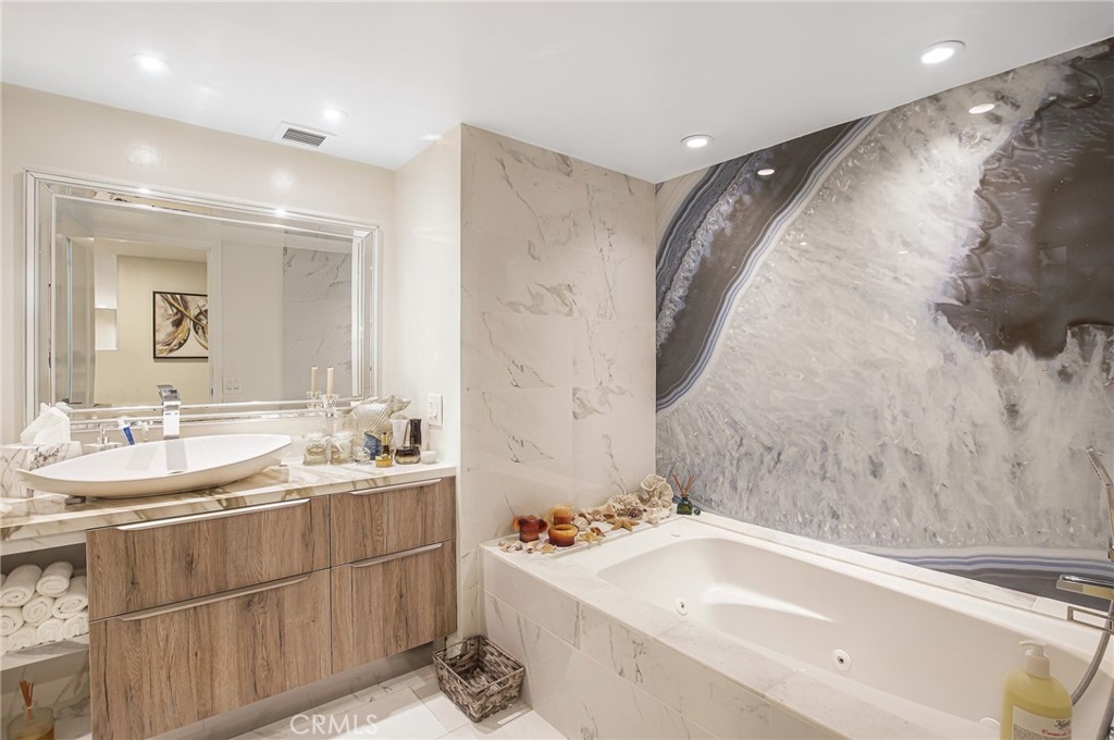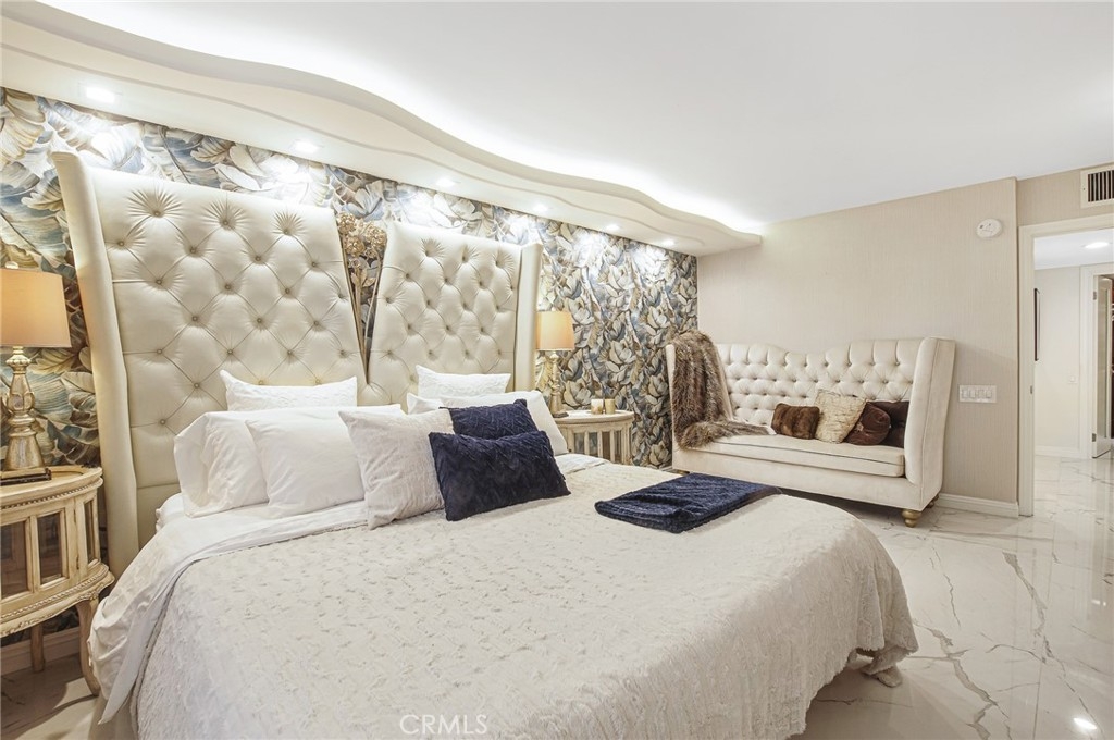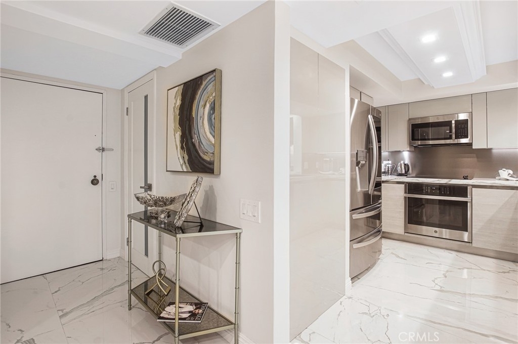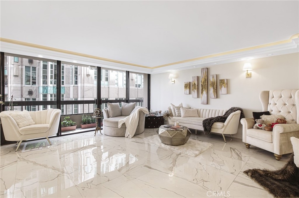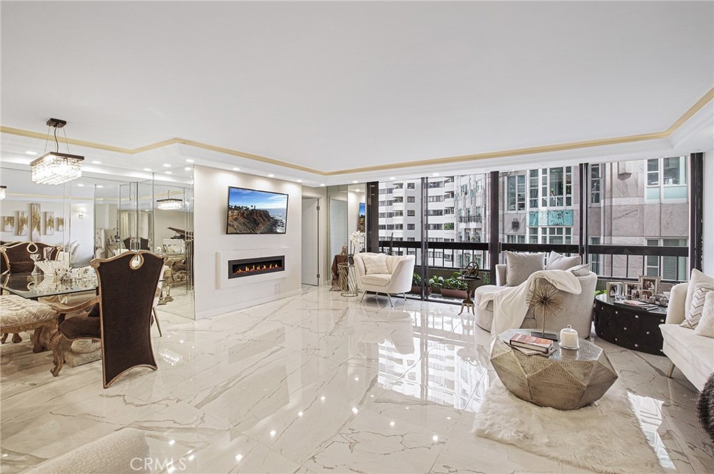 Luxury living in the Wilshire corridor. Recently remodeled with exquisite taste and the highest quality materials, this property has everything. Walk into this bright open floor plan with Calacatta marble flooring, Italian wall coverings, recessed lighting with brand new electrical system. Large open living room, dining room, two bedrooms and two bathrooms. The master bedroom has a large walk-in closet and a separate shower and tub. Each bedroom sits opposite the other with its own bathrooms designed with Calacatta stones and Italian cabinets. A gorgeous marble fireplace and a large balcony with an amazing view! Designer kitchen with Italian designed cabinets, Calcatta cold countering kitchen counters and top of the line appliances. The entire unit is covered with Italian wall coverings. Very spacious with treetop views from each room. Seller might consider selling fully furnished. There is a rooftop deck with 360 degree city and hillside views, and a lounge area with a BBQ. Other amenities included are a doorman, fitness center, pool, spa, valet parking and 24 hour controlled entry.