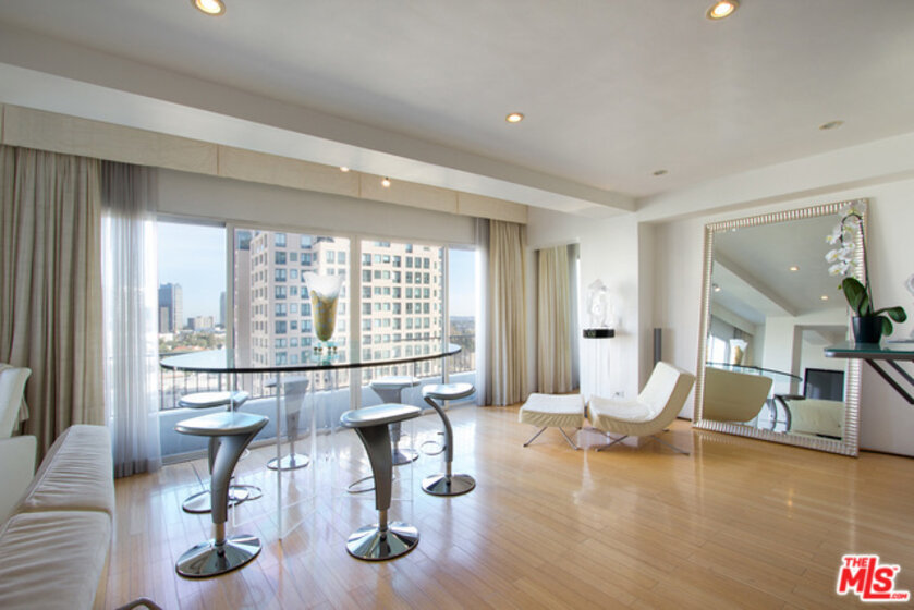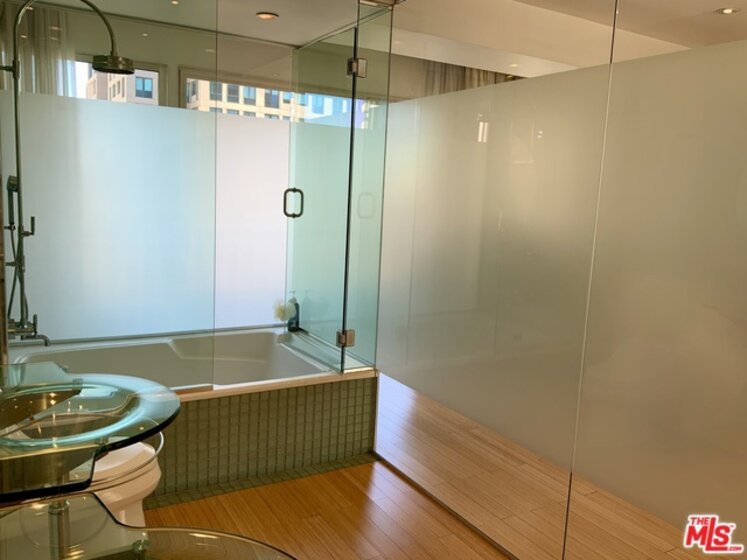 Two units combined (APN:4360-034-059 & 4360-034-060) to make this lovely spacious 2 bedroom with two baths. Bedroom wall has been removed, and seller will install wall to easily convert unit back to two bedrooms if desired. Beautifully remodeled with high ceilings, recessed lighting, bamboo floors, and top of the line appliances. Enter into large living room with spectacular Century City southern views and open kitchen with glass counter tops and walk-in pantry/storage area. Large master suite has stunning enclosed bathroom with huge tub/shower and double sinks. Building has 24 hour concierge, valet parking, pool. gym, spa, sun deck, banquet facilities, guest rooms and more. HOA dues includes ALL UTILITIES including internet. See showing remarks for showing request. Community laundry on fifth floor.