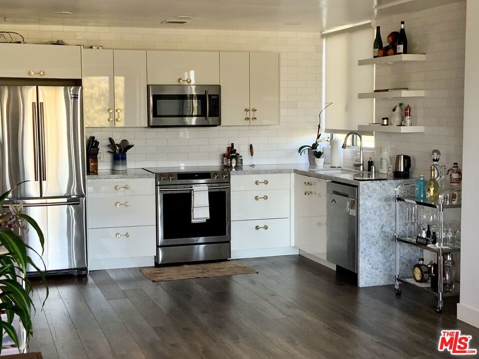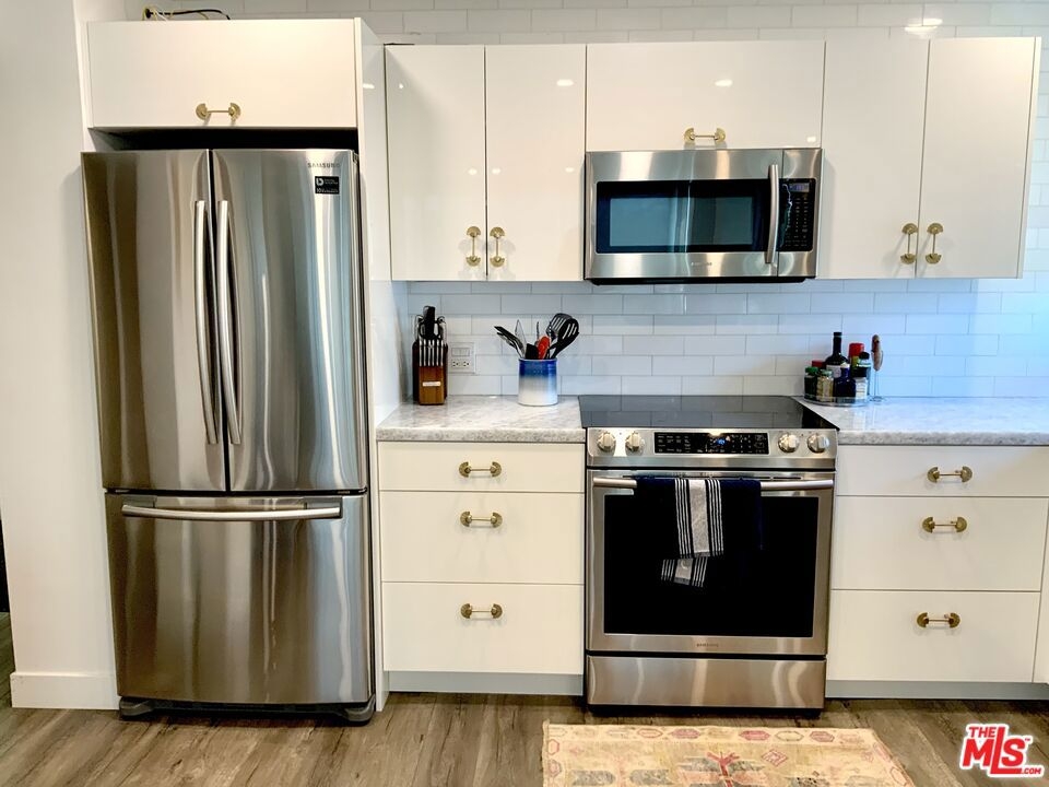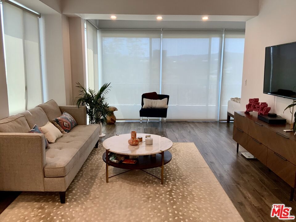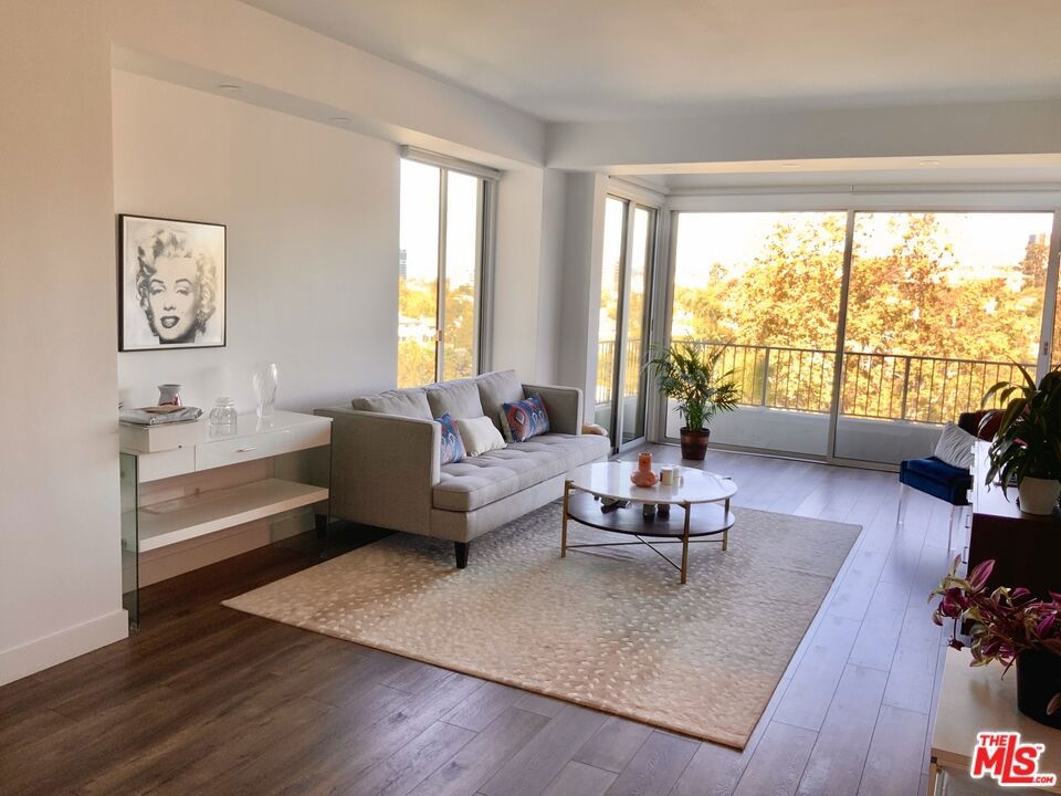 Truly a gem! Fabulous corner single with NorthWest views from Santa Monica to the Getty. Gorgeous remodel with top of the line appliances, recessed lighting, gray plank flooring, closets and built-ins galore. Kitchen has lovely granite countertops, white lacquer cabinetry and Carrera marble back splash. Balcony was taken for interior space which created nook for double bed. Fleetwood double paned doors and windows add to the amazing peacefulness this condo exudes. Full service building with on site manager, 24 hour concierge, valet parking, pool, gym, spa, sun deck, banquet facilities, guest rooms and more. Common area laundry on 5th floor. All utilities included in monthly HOA dues.