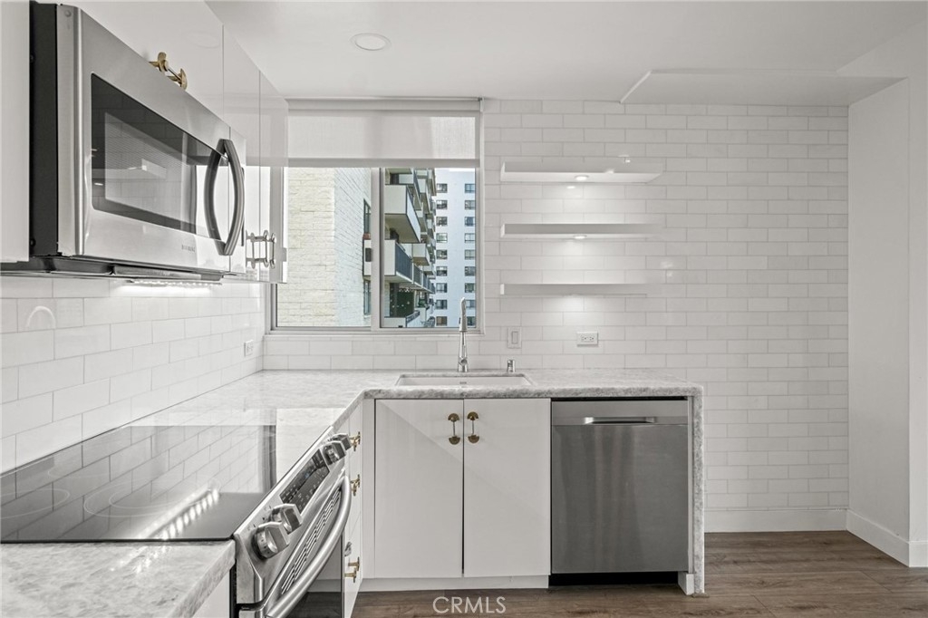 Welcome to the Wilshire Regent, a landmark on the Wilshire corridor and a beautifully maintained full service Highrise community. This corner studio unit is one of best in the building with a luxury remodel and fabulous westerly view. Features include a kitchen with stone counter tops, white glass backsplash, custom cabinetry and stainless-steel appliances and a bathroom with a large shower/tub enclosure, glass subway tile and a view window. Additional features include luxury vinyl plank flooring throughout the unit, forced air heating and air conditioning and of course, large Fleetwood double-pane sliding glass doors, all with remote control blinds, to enjoy the majestic views of the city, mountains and sunsets. The community features concierge service, banquet/meeting center, guest suites, private offices, an exercise room, swimming pool, sundeck, and valet parking. All this plus a half a mile to UCLA, an assigned underground parking space with elevator access, utilities included and a perfect central location to Wilshire Corridor, Westwood, Downtown and beyond, makes this a perfect place to call home or a great investment. Don't miss out on this wonderful opportunity.