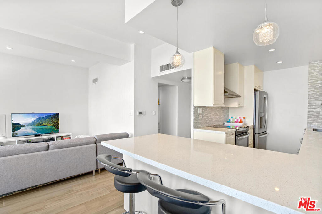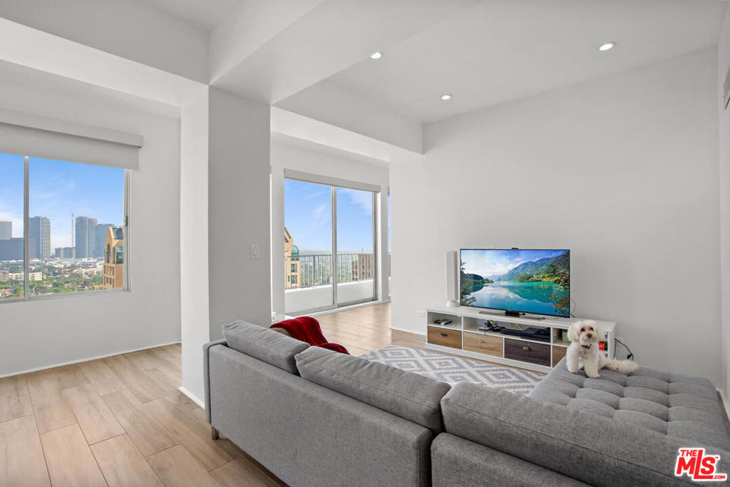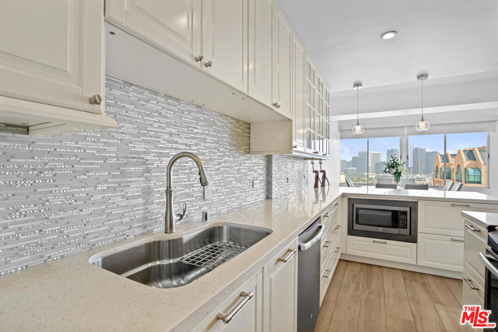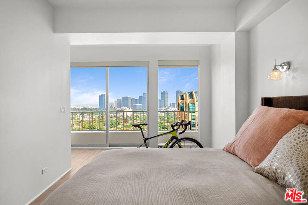 Enjoy spectacular Century City views from this beautifully remodeled condo. Dramatic high ceilings throughout with recessed lighting, gorgeous wide blanked grey porcelain flooring, and living room/den are add to making this a wonderful contemporary home. Large gourmet kitchen includes a breakfast bar, and is complete with stainless steel appliances, stunning stone counters, and custom tiled backsplash. Both master and 2nd bathroom have elegant, quality finishes. The master bedroom includes generous closets including a walk-in, and the adjoining bath has separate shower & tub. The Wilshire Regent is one of the most desirable full service buildings on the Corridor, offering 24 hour concierge, valet parking, large pool and spa, fully equipped gym, banquet facilities, conference room, guest rooms, and an on-site manager. HOA dues includes Direct TV, internet, and ALL UTILITIES. 2 washer/dryers on the floor (none allowed in unit). No smoking building per the CC&R's. PEAD prior to any showing. Masks essential. See showing remarks.
