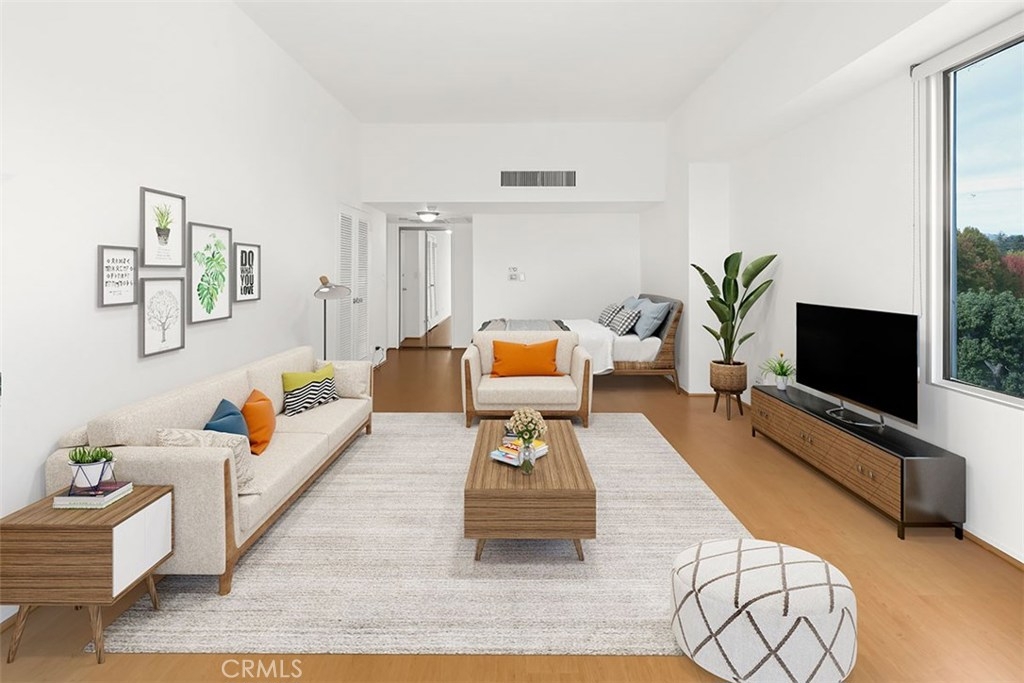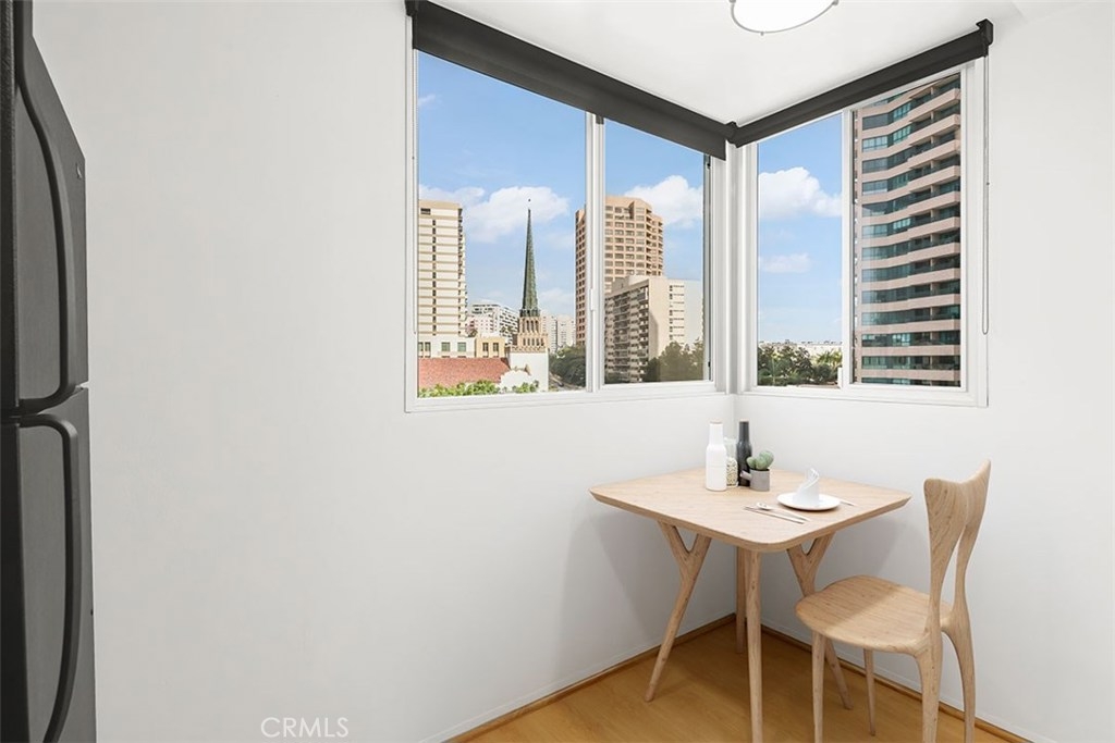 This is an amazing opportunity to live in one of the best full-service buildings on the Wilshire corridor, The Wilshire Regent. When you enter this light and bright studio condo you will be astonished by the wall-to-wall windows with amazing views. This unit is clean and ready for move-in. The kitchen has been remodeled with granite counter tops and includes the range, microwave and refrigerator. The windows and sliding glass door have been upgraded with Milgard dual-pane glass for noise reduction and energy efficiency. Roll the shades up to allow for unobstructed views and lots of light or roll them down for privacy and light reduction. The full bath includes a tub and shower combo and a newer vanity. There is plenty of storage and closet space too. This unit comes with an assigned covered parking spot. The HOA dues include all utilities. This building offers lots of amenities including 24/7 concierge and security, an on-site manager, guest valet parking, a remodeled gym with loads of equipment, an outdoor pool and sun deck, jacuzzi, conference room, banquet facilities, and guest suites that are available for rent.