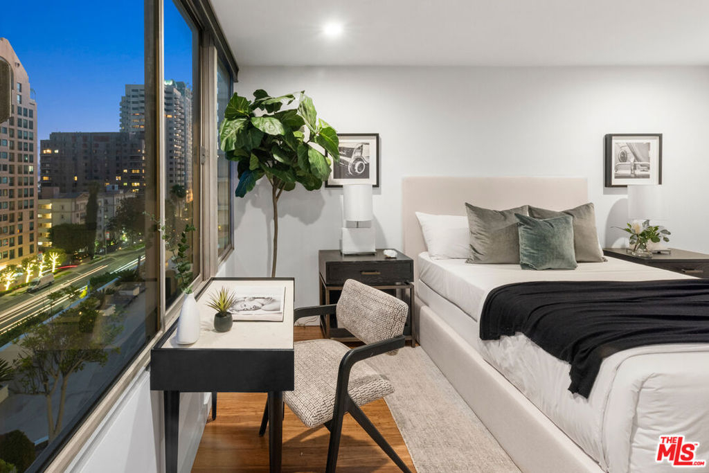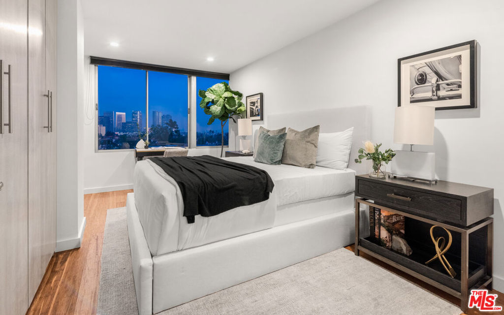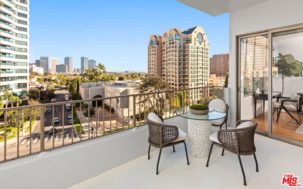 Fall in love with this beautifully renovated condo with designer finishes and astounding city views in the highly coveted, full-service Wilshire Regent. The open floorplan is accented by high ceilings and expansive glass sliding doors that flood the condo with natural sunlight and frame stunning views of Century City, Beverly Hills and beyond. Step out onto the massive balcony, perfect for al fresco dining and entertaining. The luxurious kitchen has stainless steel appliances, quartz counters & glass tile backsplash, and the dining alcove features an Arteriors chandelier. The elegant bedroom has large windows and a sliding door to the balcony. The bedroom has a large custom built walk-in closet, and three additional custom closets. The gorgeous bathroom features Porcelanosa tile, rain shower head, LED backlit mirror with storage, and beautiful vanity. Lutron smart home lighting throughout. Luxurious amenities include a newly renovated fitness studio, pool, lounges, valet parking, 24/7 doorman & more. Extra storage unit included. Move in today & relish your central location, moments from Westwood Village, Beverly Hills, Century City and Brentwood, and the best shops, restaurants and dining the city has to offer. ALL UTILITIES ARE INCLUDED IN HOA: electric, wifi, cable, amenities, parking.