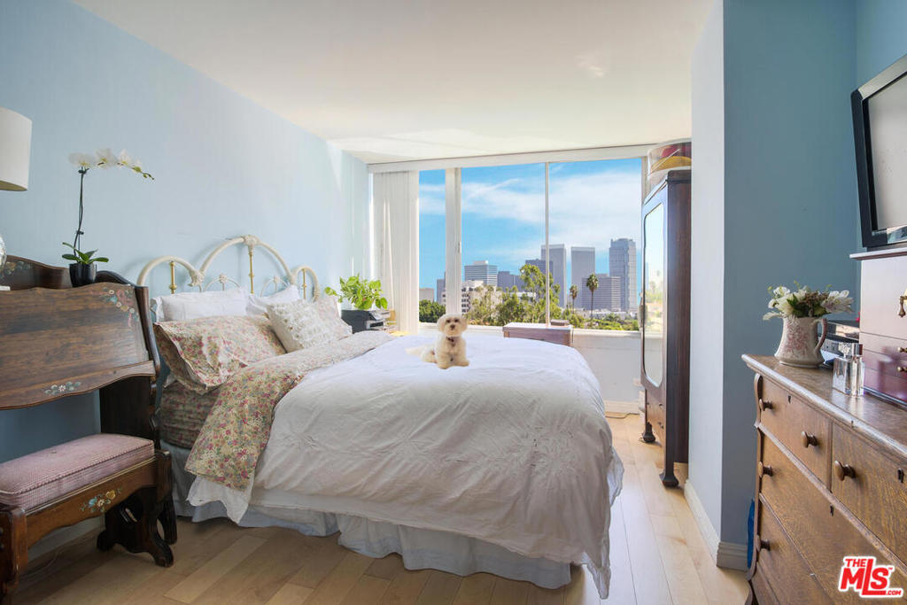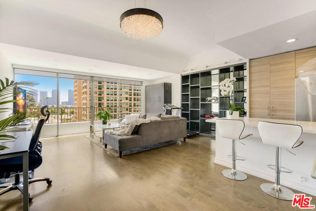 Welcome to this elegant 1bd/1bath home which has been exquisitely remodeled. Fabulous Century City views from every room. Spacious living room comes complete with beautiful custom built-in bookcases, hardwood floors, high ceilings, and even a built-in Murphy bed perfect for a roommate or out-of-town company. Modern kitchen has been beautifully remodeled with designer cabinets and tile throughout. Top of the line stainless steel appliances and breakfast bar add to the open feeling when entertaining. Bedroom has a wonderful walk-in closet with excellent storage. Bathroom is connected through a dressing area which houses more storage space. Enjoy sipping your favorite cocktail on the Romeo and Juliette balcony overlooking the pool. Extra storage locker in the basement. All of this in a full service building with 24 hour concierge, valet parking, pool, spa, gym, banquet facilities, guest rooms, and more. All utilities (including heat and central AC) included in HOA fee. Walking distance to UCLA and Westwood Village and convenient access to 405 freeway. No smoking building.