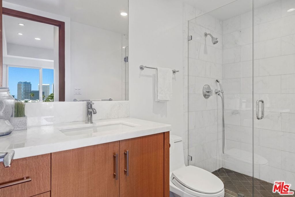Welcome to this newly remodeled, sophisticated condo with unobstructed Century City views from every room. Upon entering, you are greeted with beautiful hardwood floors and raised ceilings that lead into the generously sized living room and open kitchen with glass tile. The large master bedroom with automatic shades is the ideal retreat from the city life, and the secondary bedroom with gorgeous built-ins can also be used as an office. The building has a 24-hour concierge, valet parking, pool, gym, sundeck, spa, banquet facilities, conference room, guest rooms, and more.