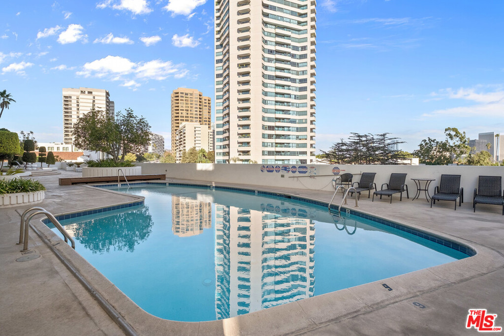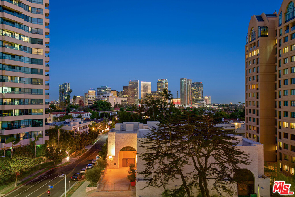 Best Value on Wilshire Corridor! Enjoy five star luxury living at its finest in this beautifully renovated corner unit condo with dual exposures and stunning city views in the full-service Wilshire Regent. An entertainer's delight, the open floor plan has a seamless flow from the entry, living, kitchen & juliet balcony with vistas of Century City, Beverly Hills and beyond. Cook to your heart's content in the updated kitchen w/ sleek marble countertops, stainless steel appliances & beautiful cabinetry. Retreat to the sophisticated master with views of Little Holmby & Bel Air. The decadent bathroom has stone throughout and a luxurious rain shower. Relish amenities including 24/7 doorman & valet, pool, spa, newly renovated fitness studio, lounge, sun deck & more. In the heart of it all, this chic condo is minutes from the best shopping, dining, entertainment and nightlife the city has to offer, within close proximity to iconic Beverly Hills, Century City, Westwood Village and more! HOA DUES INCLUDE ALL UTILITIES: cable, electric, wi-fi, water, amenities, parking, storage unit, etc.
