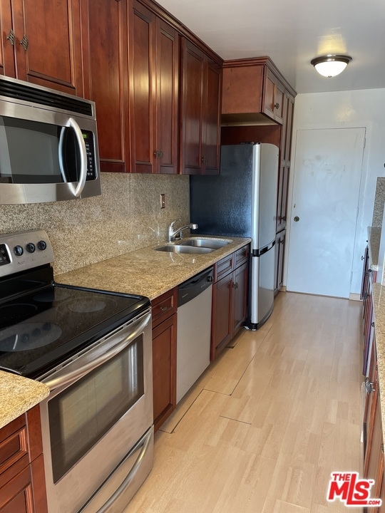 One bd/one bath condo facing north with tree top views. Great opportunity to remodel and make into a lovely home. Original bathroom. New double pane doors and windows and granite kitchen countertops. NO SMOKING BUILDING. All utilities included in monthly HOA. Full service building on the wonderful Wilshire Corridor close to UCLA, Westwood and Century City. Building has 24 hour concierge, valet parking, pool, gym, spa, banquet facilities, conference room, on site manager, guest rooms and more. NO SMOKING BUILDING. All utilities included in monthly HOA. Common area laundry room. See showing remarks. Masks required.