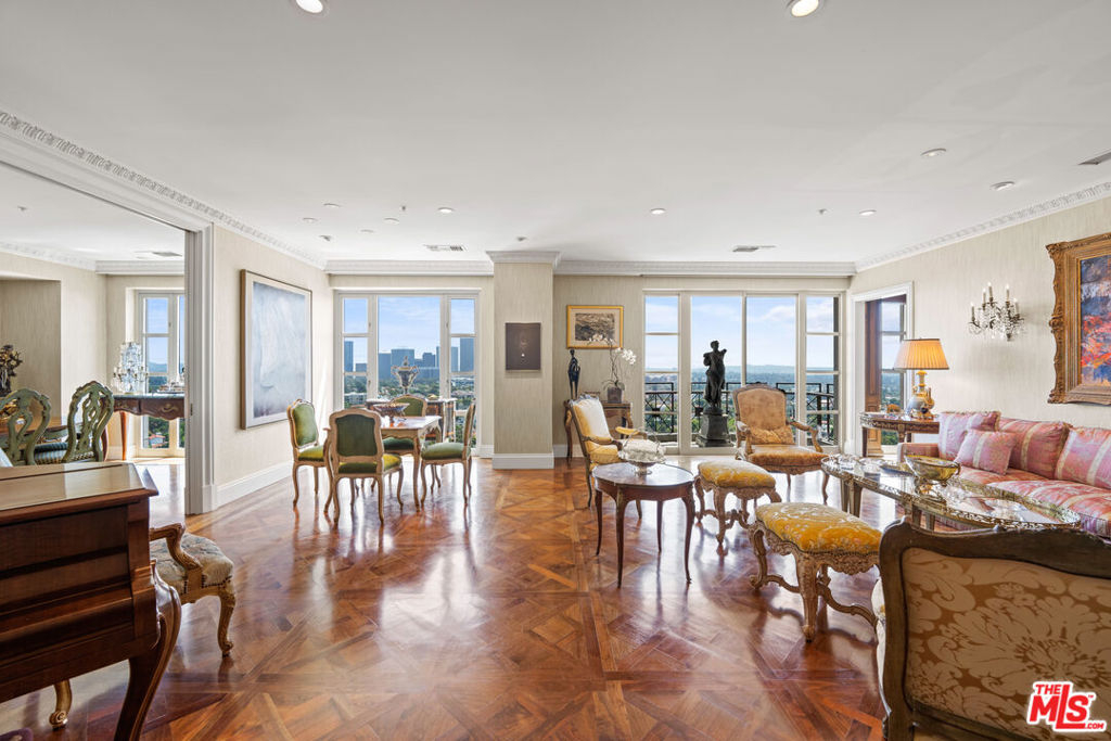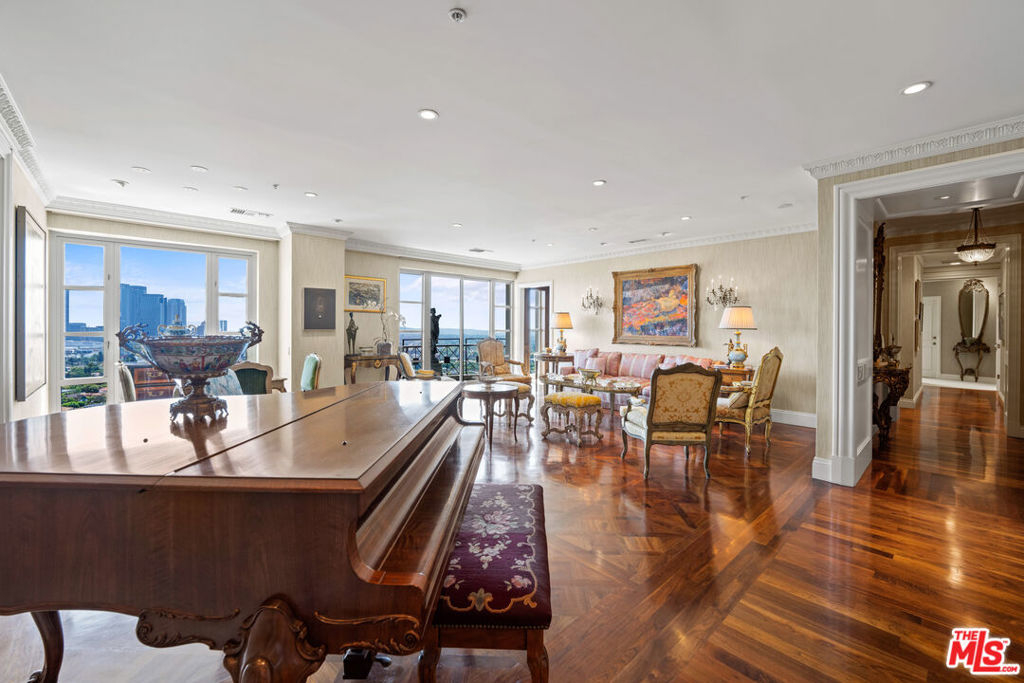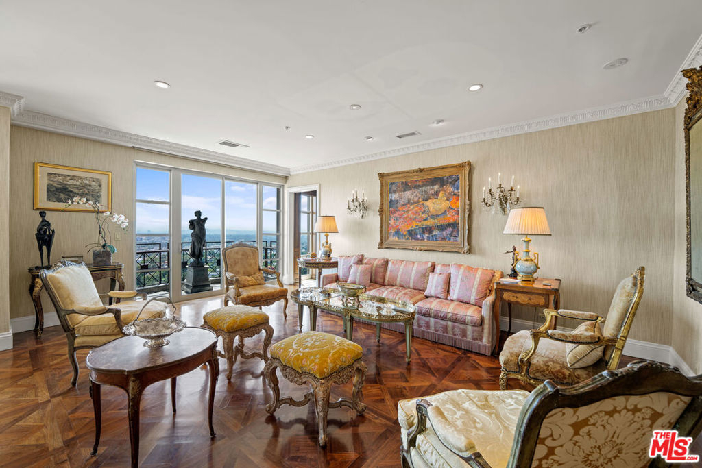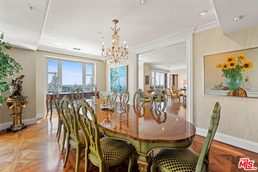 The ultimate unit in the Wilshire Corridor. This exquisite and unrivaled residence at The Wilshire attracts thrilling natural light and breathtaking, one-of-a-kind views from Downtown LA to Santa Monica Bay, the Ocean, and Catalina Island beyond. This elegant and tasteful design makes a dramatic statement of a preeminent residence in the sky. Warm finishes are achieved with lavish expanse of a wood-carved study and wide open entertainment spaces. Providing 2,757 S/F, this 2 bedroom 3 bath property offers a formal dining room, spacious jaw-dropping outdoor balcony, beautiful Primary Suite w/two walk-in closets finished with beautiful hand laid wood flooring. The Wilshire offers a secure controlled-access Elevator opening directly into the Private Foyer. Balconies offer "Dramatic" wrap-around views of Century City, Hollywood Hills & Griffith Observatory and are all on the preferred side of this building facing south, away from the Wilshire Blvd orientation. Security, Valet parking, doorman, and front-desk for guest/visitor registration; day-time on-site building manager, well-appointed Banquet/Meeting Rooms, Fitness Center, Pool, and Extra Storage, including separate 36-bottle Wine Lockers. Just blocks from the ever-green Comstock Park, Hammer Museum, Geffen Playhouse, UCLA medical center, LA Country Club, dining & shopping. East coast sophistication meets a modernized west coast luxury lifestyle.