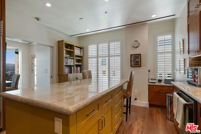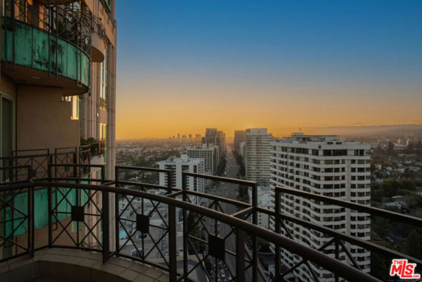Luxurious "Junior Penthouse" on 23rd floor at The Wilshire on prestigious Wilshire Corridor. Mesmerizing city, mountain, and ocean views from 4 terraces facing N, E, and S. Beautifully updated and decorated; move-in-condition! Elevator opens onto private vestibule. Elegant gallery spans entire width of unit. Soaring, light-filled, 2-story living room w/FP, custom built-ins + generous terrace facing N. Spacious family room w/custom built-ins + terrace facing N, bathroom, + adjacent storage room w/service hall access. Powder room and sitting alcove adjacent to formal dining room + terrace facing N with stellar views. Completely updated chef's kitchen features top-of-the-line appliances, cabinetry, tiles, and counter tops. Separate laundry room. Primary suite frames enviable eastern and southern views from generous bedroom + terrace, luxurious bathroom + walk-in closet. Suite also incorporates sitting room + terrace, walk-in closet + bathroom (formerly a third bedroom). Spectacular wood floors, cabinetry, sophisticated finishes and customized closets throughout. Electronic and manual window coverings. The Wilshire is an amenity-rich, full-service building with a superb, long-term staff. Gym, swimming pool, elegant party room, card room, business center, catering kitchen, gym, wine storage locker, two parking spaces, and private storage room in garage. Note: Originally 3 bedrooms, unit was expertly converted to a primary ensuite w/sitting room, plus a family room. Could be converted back to 3 ensuites.