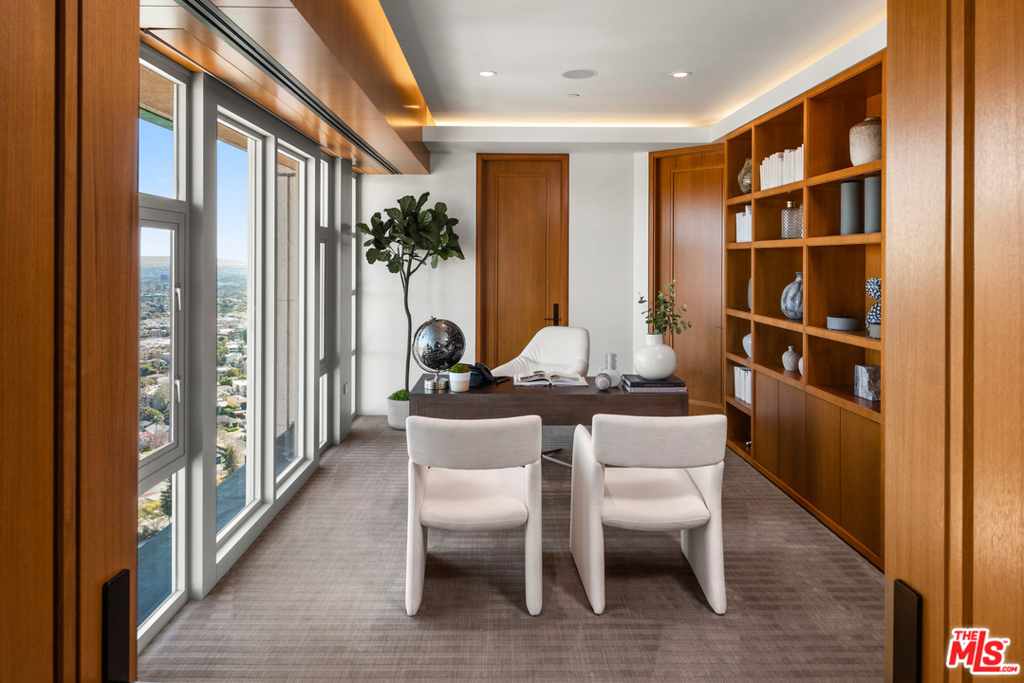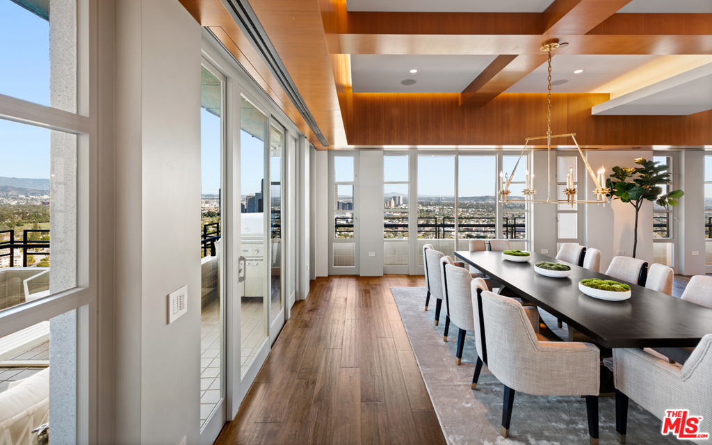 The premiere unit in the most prestigious building on the Corridor. The fully-automated Presidential Penthouse at The Wilshire offers the unprecedented quality & luxury of a 2-year project designed as a forever home w/extreme attention to detail & no expense spared, w/high ceilings & clean, warm, modern finishes. 2-story art gallery & unobstructed views high above LA. Wine wall, living room opens to indoor/outdoor dining rooms lit by the city. Eat-in kitchen w/Sub Zero & Wolf appliances + guest-suite. Private elevator to Master w/auto blackout shades & walls of glass. Private gym, office, walk-in closets & spa-like baths. 5-star amenities; 24 hour concierge & valet, pool & fitness center, wine locker, storage & private meeting rooms, commercial catering kitchen & 4 parking spaces. Just blocks from the ever-green Comstock Park, Hammer Museum, Geffen Playhouse, UCLA medical center, dining & shopping. East coast sophistication meets a modernized west coast luxury lifestyle.