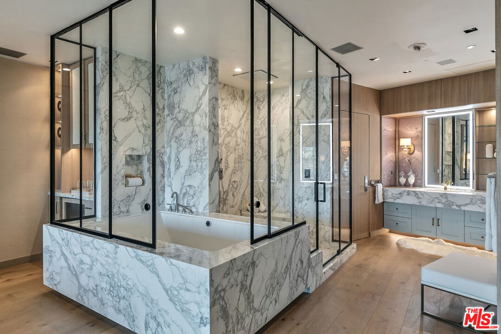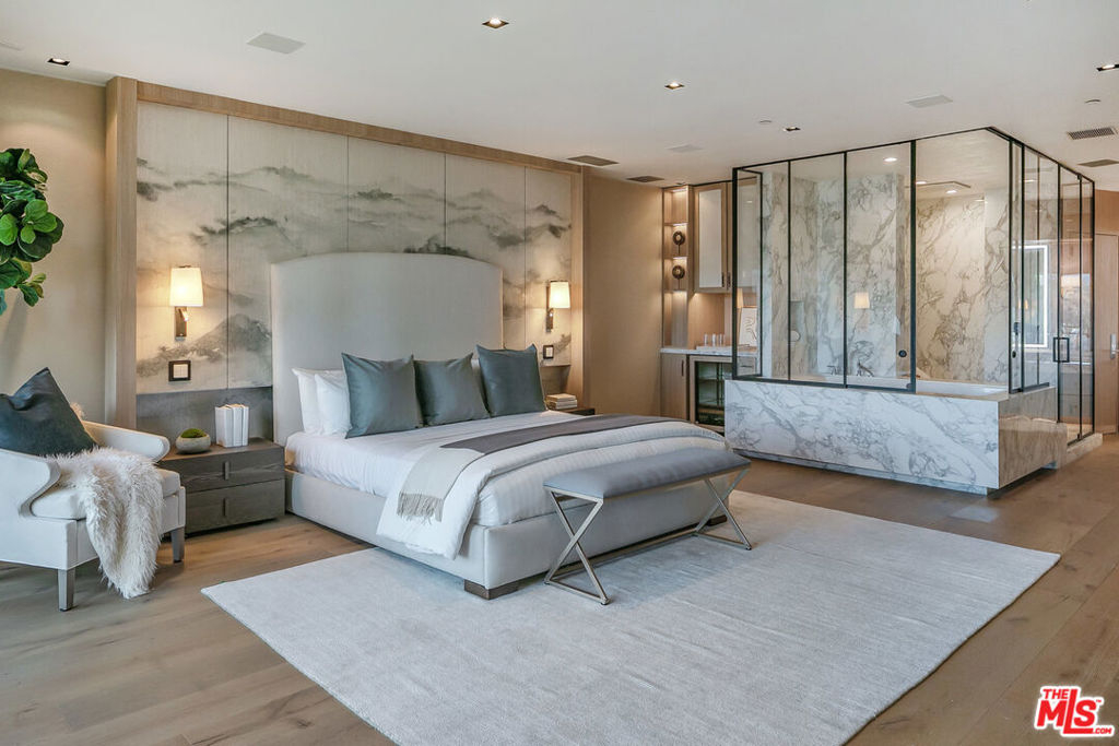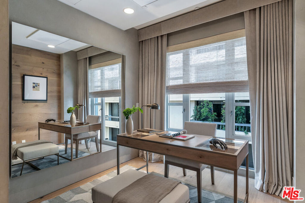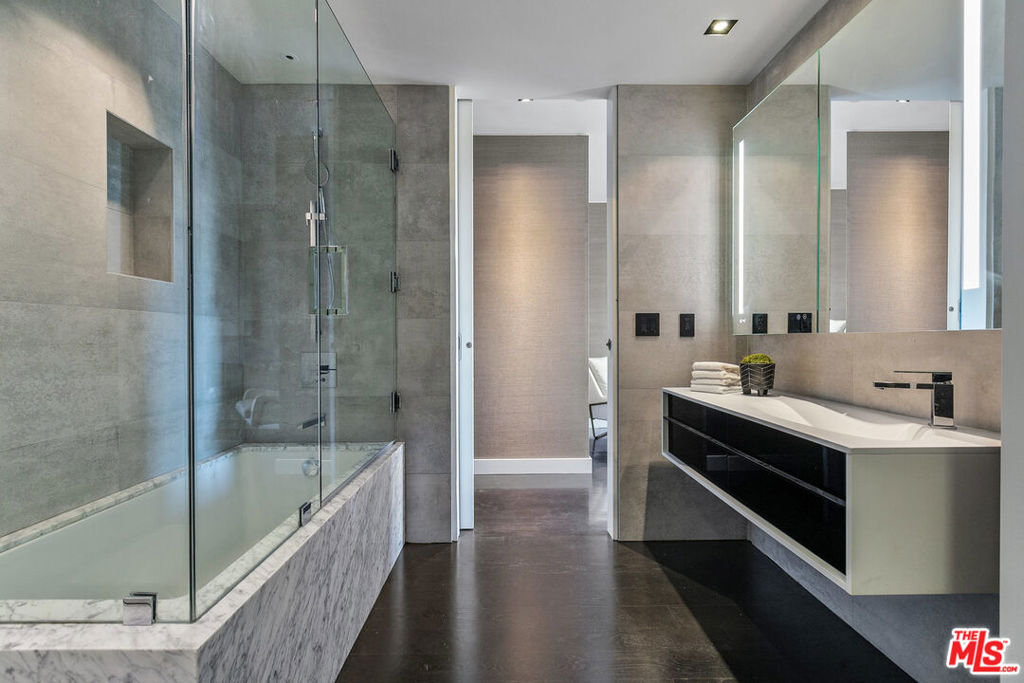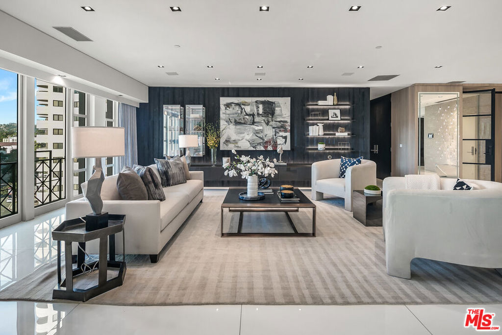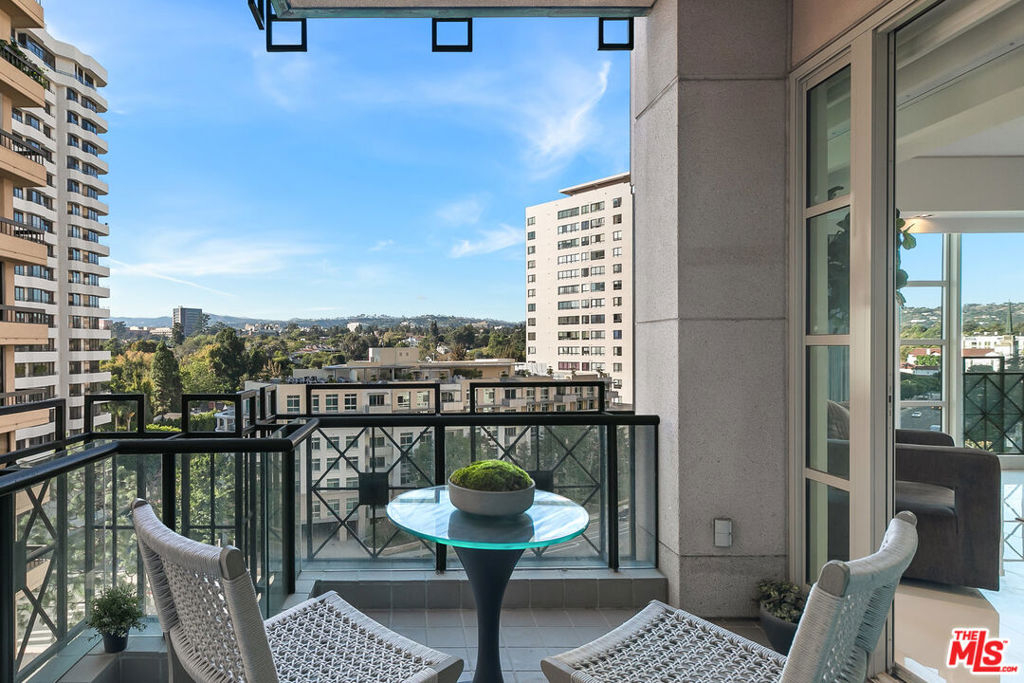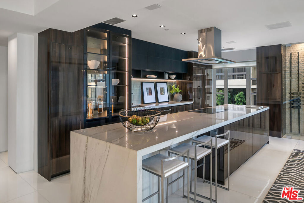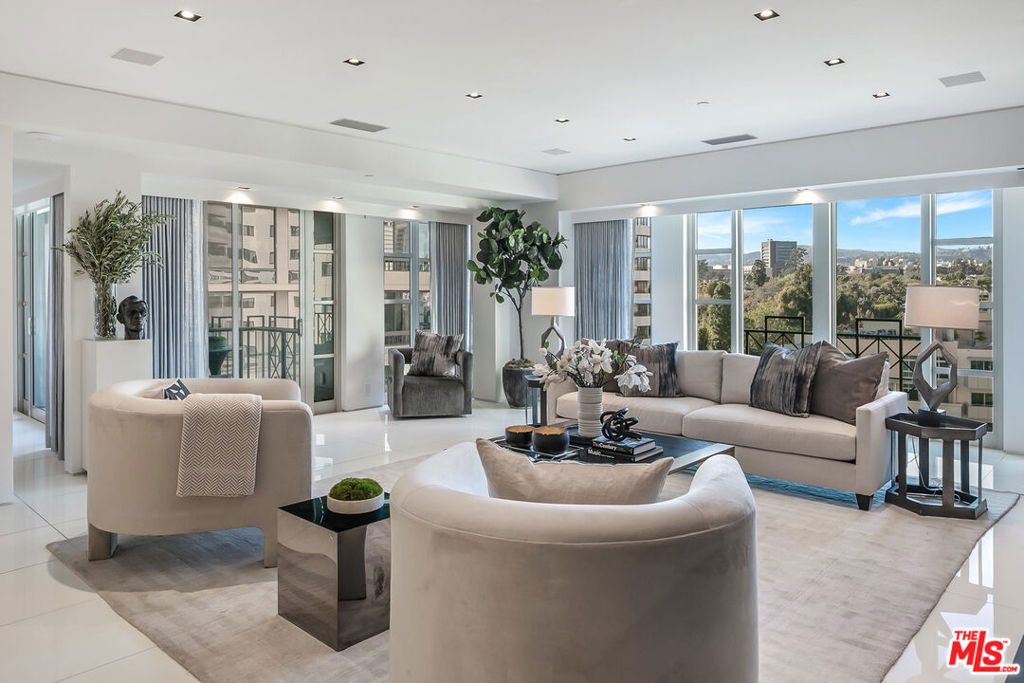 Enter this must-see three bedroom unit at The Wilshire directly from the elevator and into the elegantly designer-remodeled open floor plan. The chef's kitchen features an oversized island with seating and is adjacent to the formal dining area with wall-to-ceiling wine display - perfect for entertaining. The balcony and spacious living room have spectacular views of the Bel-Air hills. A light-filled sitting room, spa-like shower and soaking tub, double vanity, and Poliform walk-in closet highlight the zen retreat primary suite. Two more en-suite bedrooms complete the space with the flexibility of making them a home office and/or yoga/exercise studio. All this in the premier building along the Wilshire Corridor offering valet, front desk/concierge, security, pool and fitness center. Same day showings can be arranged.