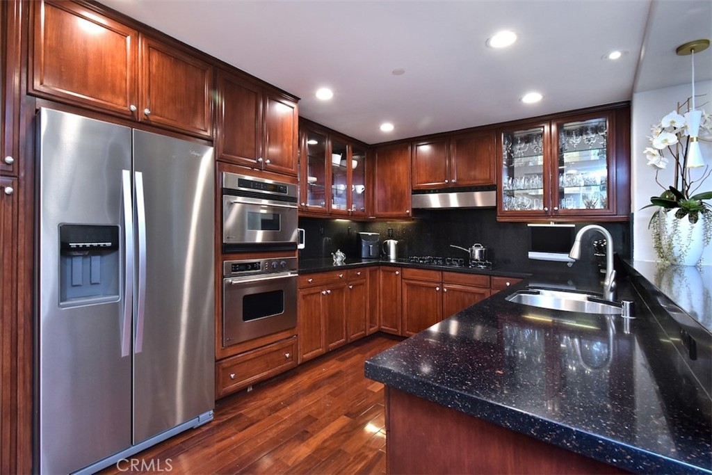 A staycation for the most sophisticated and discrete! This is a stunning condominium at The Venezia, a boutique, Tuscan style building, on the Wilshire Corridor. Spacious and private, 2 bedroom suites, separate from each other, feature a formal entry that leads to an open plan living/dining room plus a bonus room/den with fireplace. A culinary cooks kitchen offers granite counter tops with stainless steel appliances, under counter lighting and glass display cabinets. Main suite has a step balcony, 2 closets and spa bath- Upgraded finishes and separate tub & shower including a Toto automatic toilet. Addl. features include a large 2nd bdr and bath, coffered ceilings, inside laundry, powder room, cherry walnut floors and custom recessed lighting built ins and mirrors. The Venezia offers doorman, controlled access, valet parking, exercise room, conference room and one of the best rooftop decks on the Corridor with a BBQ grill, seating and City views. Close proximity to UCLA, Westwood Village and major fwy. HOA dues are $1279.00 month and include EQ Ins. and building amenities.