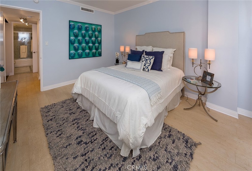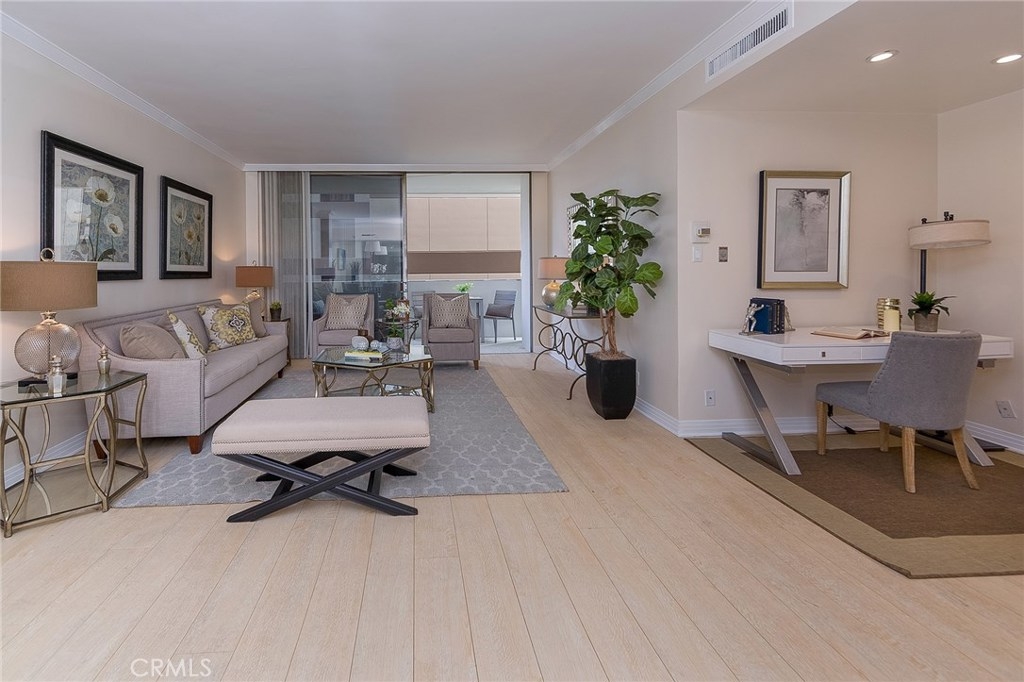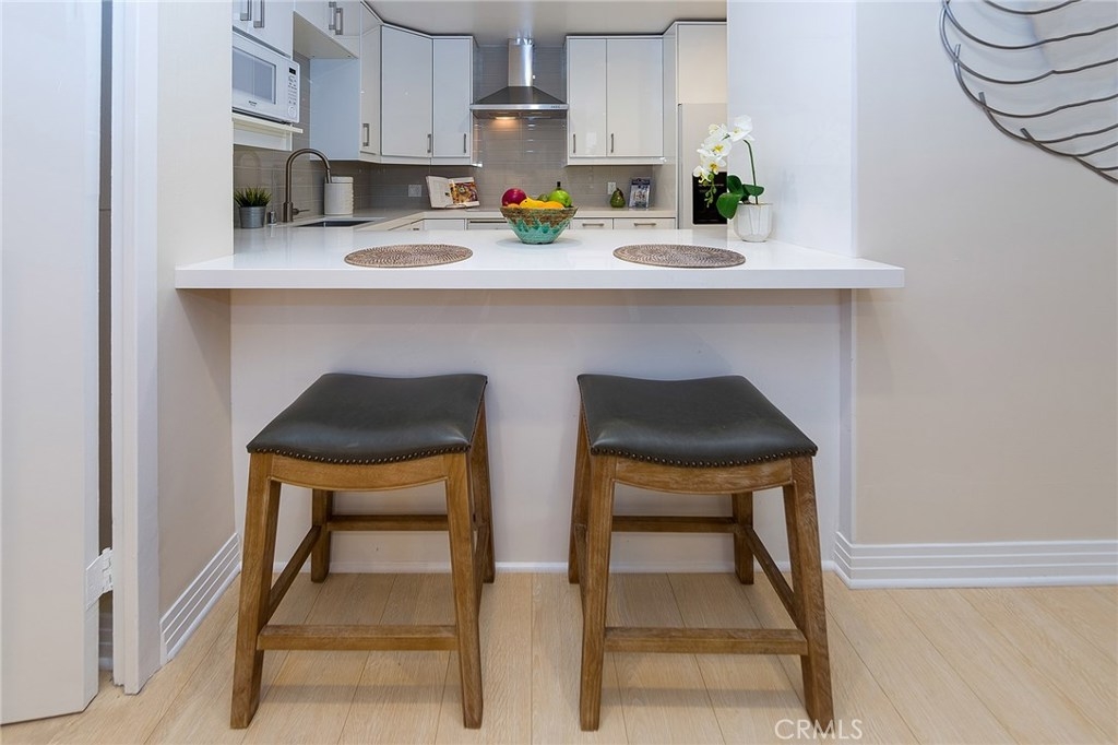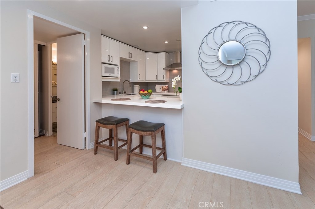Mesmerizing condo located at Wilshire Holmby in the Wilshire Corridor. Walk into this luminous and fluorescent 873 square feet unit. This 1 bed + 1 bath unit boasts an open floor plan, gorgeous new light-colored hardwood style flooring throughout, balcony, recessed lighting throughout, kitchen with new cabinets, modern hood, new appliances, Caesar stone counters, modern tile floors and backsplash. Spacious bedroom with double closet made up of new interior sliding mirrored doors as well as new closet shelving for lots of space. Walk into a beautiful bathroom with a modern look featuring marble vanity and a lovely tiled shower and bath. In addition, this unit has fresh new paint throughout, new trim and molding detail. Wilshire Holmby is a full-service controlled access building offering its residents concierge service, doorman, gym, and valet parking. Its location is conveniently within close distance to shops, restaurants, movie theaters and only minutes to the 405 freeway.