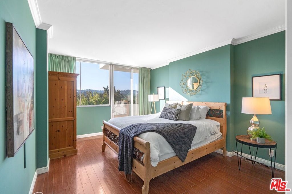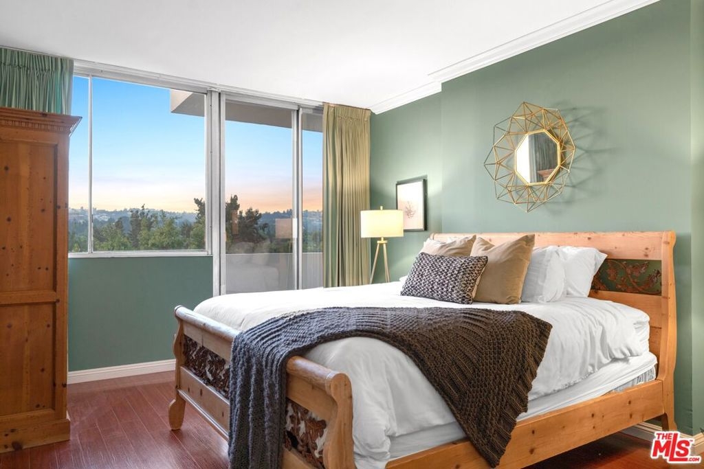 This immaculate unit in the prestigious Wilshire Holmby features stunning unobstructed panoramic views of the city and Santa Monica Mountains in a peaceful setting with no street noise as it is located on the opposite side of Wilshire. Entertain yourself and your guests on the large balcony that leads directly into the open floor plan living room and dining area. The kitchen features light wood cabinets, built in dual wall ovens, electric cooktop, microwave, refrigerator, and a deep ceramic sink. The unit features 2 bathrooms, a powder for your guests in the living area and a full bath adjacent to the bedroom. The large bedroom features stunning floor to ceiling sliding glass doors that lead directly to the balcony or enjoy the views from your bed any time of the day. Wilshire Holmby is a full service building with valet parking, 24 hour security, on site manager and maintenance, pool, clubhouse, fitness center, and gated community garage. All utilities are included as well as internet and cable! Amazing location just minutes from UCLA, Beverly Hills, Century City, and 405 freeway. One of the best kept units on the Wilshire Corridor, will go fast don't miss out!