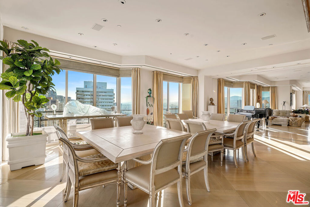 With its premier placement on the Wilshire Corridor, this single level unit in the Wilshire House is the perfect blend of prestige and contemporary style. Designed by internationally acclaimed Bauhaus architect Victor Gruen, the Wilshire House is Los Angeles' foremost luxury high-rise. The building boasts a wealth of amenities to enjoy, including a professional fitness facility, tennis court, pool, sun deck, library, meeting rooms, doorman, valet parking, and 24/7 concierge and security.Situated on the coveted Wilshire Corridor, you'll be mere minutes away from world class dining, shopping, and entertainment in Beverly Hills, Century City, Bel Air, and Westwood. Directly from the elevator, you'll enter your personal and secure lobby, which welcomes you into this fully custom 3 bed 5 bath unit. Proceed into the expansive living, family, and dining rooms where you'll find automated doors to separate or conjoin the space, and floor to ceiling windows that provide unobstructed city, mountain, and ocean views. Step outside and take in the sights, then soak up the breathtaking sunsets on the wraparound terraces and balconies. Make your way back inside to the gorgeous kitchen, which is equipped with beautiful granite countertops, a spacious island, two pantries and ample storage. From the kitchen, you'll have access to the intimate wet bar, card room and separate breakfast area. Pass through the hallway while strolling to the Primary Suite, where you'll find extensive custom built-ins, perfect for the art aficionado or collector. The primary suite, complete with dual walk-in closets as well as dual en-suite sumptuous bathrooms, featuring a separate steam and sauna will be your own personal haven of grandeur and comfort. The remaining two bedrooms are spacious, inviting, and picturesque, each offering additional stunning views. With this unit, you'll be able to enjoy the best that the Wilshire Corridor has to offer, all while being able to retreat to your private penthouse sanctuary. For a chic and opulent home, this is one you can't miss!