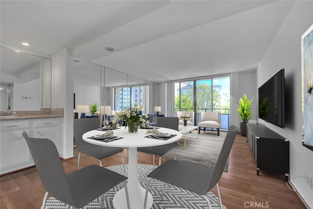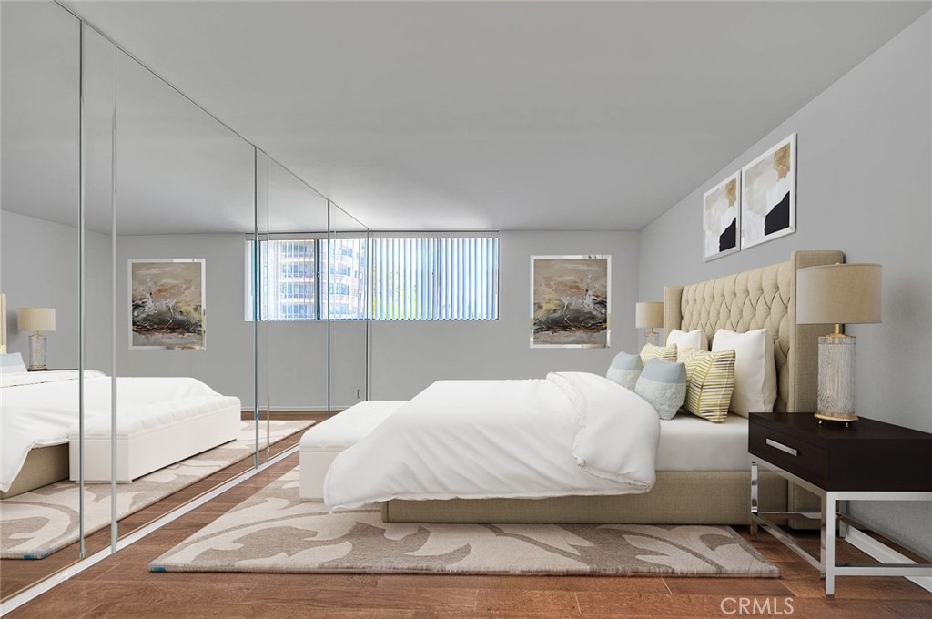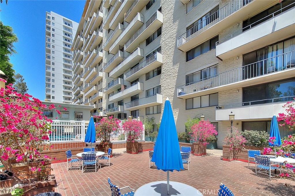 Very well kept high-rise condo in the prestigious Wilshire Marquis. The 1,073 square feet unit features 2 bedrooms and 2 baths with laminated wood floors throughout. Open concept kitchen with granite countertops. Wet bar. New interior paint. The bright and airy living room leads to a private balcony that over looks Wilshire Corridor. Master suite with walk-in closet. Stackable in-unit washer and dryer. Community amenities include a 24-hour concierge, dedicated parking spaces in an attended gated garage, plenty of guest parking, pool and spa, gym, 3 tennis courts, BBQ area and recreation room. This property is just minutes from UCLA, Beverly Hills, Century City and Westwood with easy access to the 405 freeway.